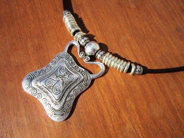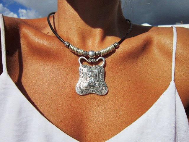 Leather necklace with bohemian silver tribal pendant, tribal boho jewelry. An everyday fashion jewelry !! necklaces for women, silver jewelry, personalized leather jewelry, original designs by kekugi.