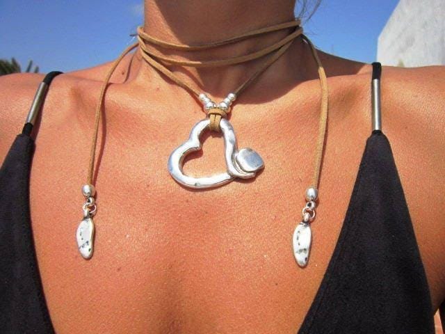 Statement Layered Chunky Couples Heart Necklace • Bohemian Neotribal Jewelry • Best Selling Items • Gift for Host or Galentine Gift