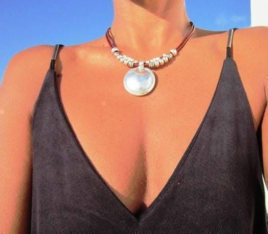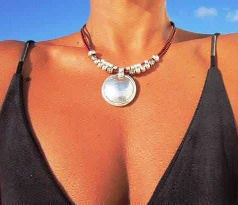 ♥ This Custom Statement leather and silver beaded pendant necklace is part of our best selling items, a perfect blend of timeless style handmade jewelry. Silver necklaces for women made to size to match your style. Designed as a delicate charm necklace, a layered pendant necklace or a bold Couples necklace, it’s available in multiple lengths to match your style. at KEKUGI you can find pendant necklaces, beaded necklaces, charm necklaces, choker necklaces, multi-strand layered necklaces and lariat & Y necklaces, unique bohemian jewelry Best selling items designs.