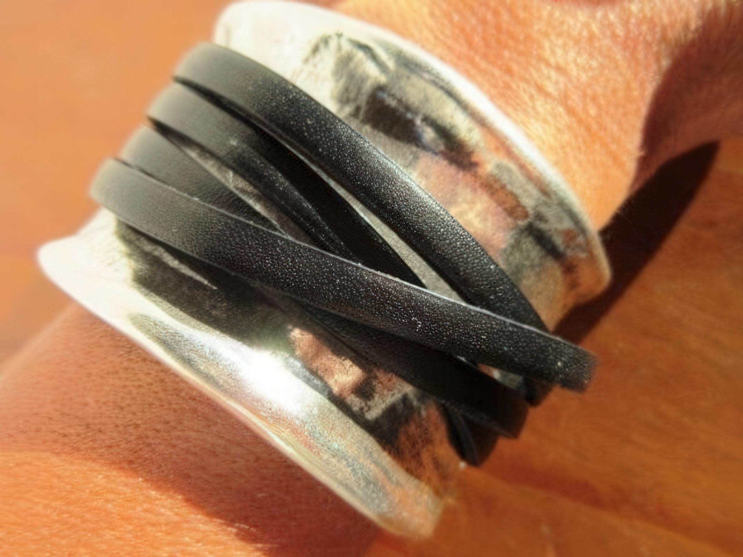 To preserve the look of your leather and silver jewelry, avoid water, cosmetics, and cleaning products. Always store your jewelryin a dry place and use a soft cloth to clean silver parts. Leather may naturally darken slightly over time, giving your jewelry a unique, lived-in feel.