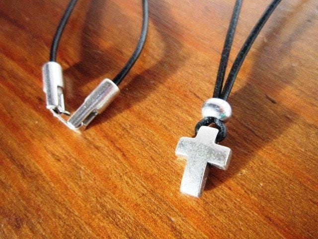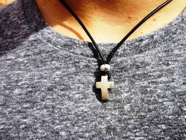Mens cross Necklace Leather crucifix Pendant Couples Necklace – Handmade Jewelry Gift for Him Personalized Jewelry by Kekugi