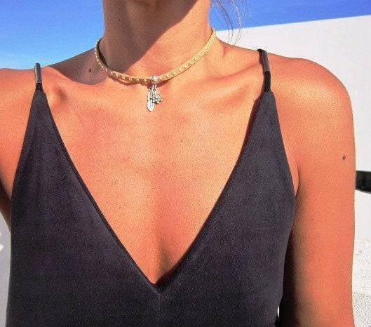 Silver necklaces for women made to size to match your style. Designed as a delicate charm leather and silver choker necklace eternity collar.