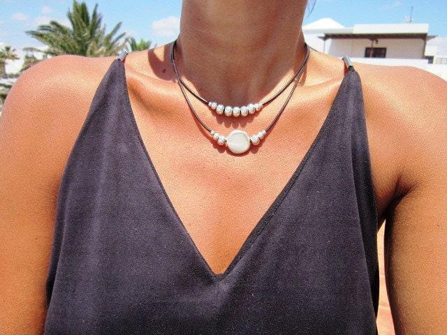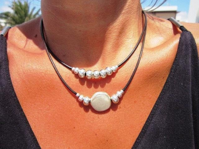 ♥ This Statement leather and silver beaded heart pendant necklace is part of our best selling items, a perfect blend of timeless style handmade jewelry. Silver necklaces for women made to size to match your style. Designed as a delicate charm necklace, a layered pendant necklace or a bold Couples necklace, it’s available in multiple lengths to match your style. at KEKUGI you can find pendant necklaces, beaded necklaces, charm necklaces, choker necklaces, multi-strand layered necklaces and lariat & Y necklaces, unique bohemian jewelry Best selling items designs.