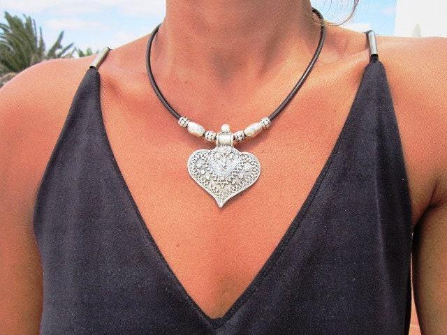 ♥ This Statement silver beaded heart pendant necklace is part of our best selling items, a leather choker necklace that makes a perfect couples necklace gift for her, a unique blend of timeless style handmade jewelry. Silver necklaces for women made to size to match your style. Designed as a delicate charm necklace, a layered pendant necklace, or a bold statement necklace perfect as Couples Necklace it’s available in multiple lengths to match your style. At KEKUGI you can find pendant necklaces, beaded necklaces, charm necklaces, choker necklaces, multi-strand necklaces and lariat & Y necklaces, Custom Bohemian jewelry Best selling items designs.