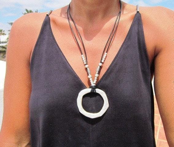 ♥ Elevate your style with this Chunky Statement Pendant Necklaces, a Silver beaded Ring necklace Charm on leather, a bold statement piece for everyday style. It is part of our best selling items, a perfect blend of timeless style handmade jewelry. Silver Chunky charm necklace for couples, necklaces for women made to size to match your style. Designed as a delicate charm necklace, a layered pendant necklace, it’s available in multiple lengths to match your style. at KEKUGI you can find pendant necklaces, beaded necklaces, charm necklaces, choker necklaces, multi-strand layered necklaces and lariat & Y necklaces, unique bohemian jewelry Best selling items designs gift for Her, birthday gift or personalized gifts.