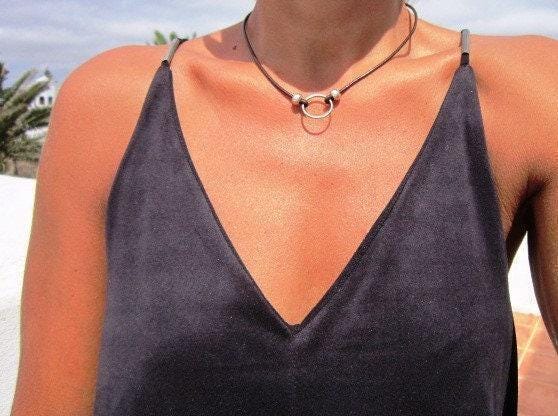 ♥ This Statement silver beaded leather choker Ring necklace is part of our best selling items, featuring a ring necklace in this design, a perfect blend of timeless style handmade jewelry. Silver necklaces for women made to size to match your style. Designed as a delicate charm necklace, a layered pendant necklace, or a bold statement necklace perfect as Couples Necklace it’s available in multiple lengths to match your style. at KEKUGI you can find pendant necklaces, beaded necklaces, charm necklaces, choker necklaces, multi-strand necklaces and lariat & Y necklaces, unique bohemian summer jewelry designs.