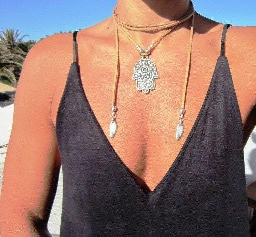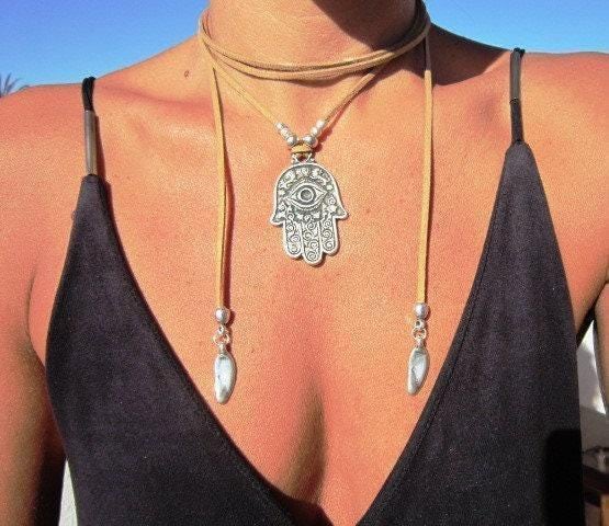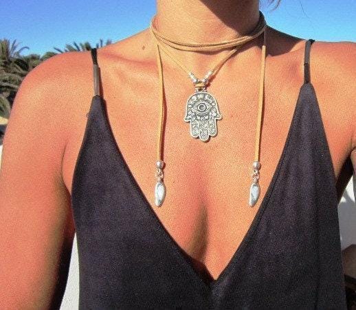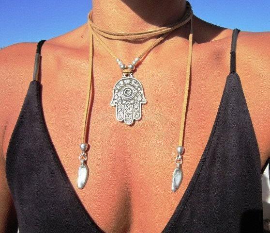 ♥ Elevate your style with these Chunky Statement Pendant hamsa hand Necklace, Silver Beaded and Leather Charm necklace layered in a bold statement piece for everyday style. Part of our best selling items is a perfect blend of timeless style handmade neotribal jewelry. Silver necklaces for women made to size to match your style. Designed as a delicate simple charm necklace, a layered pendant necklace, or a bold statement necklace, it’s available in multiple lengths. at KEKUGI you can find pendant necklaces, beaded necklaces, charm necklaces, choker necklaces, multi-strand necklaces and lariat & Y necklaces, Unique Bohemian jewelry top sellers designs.