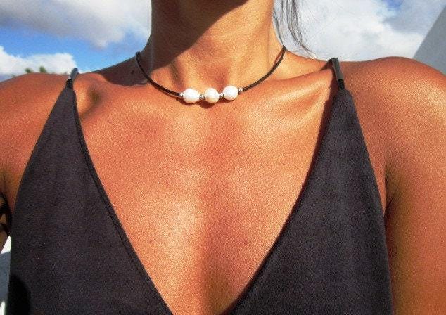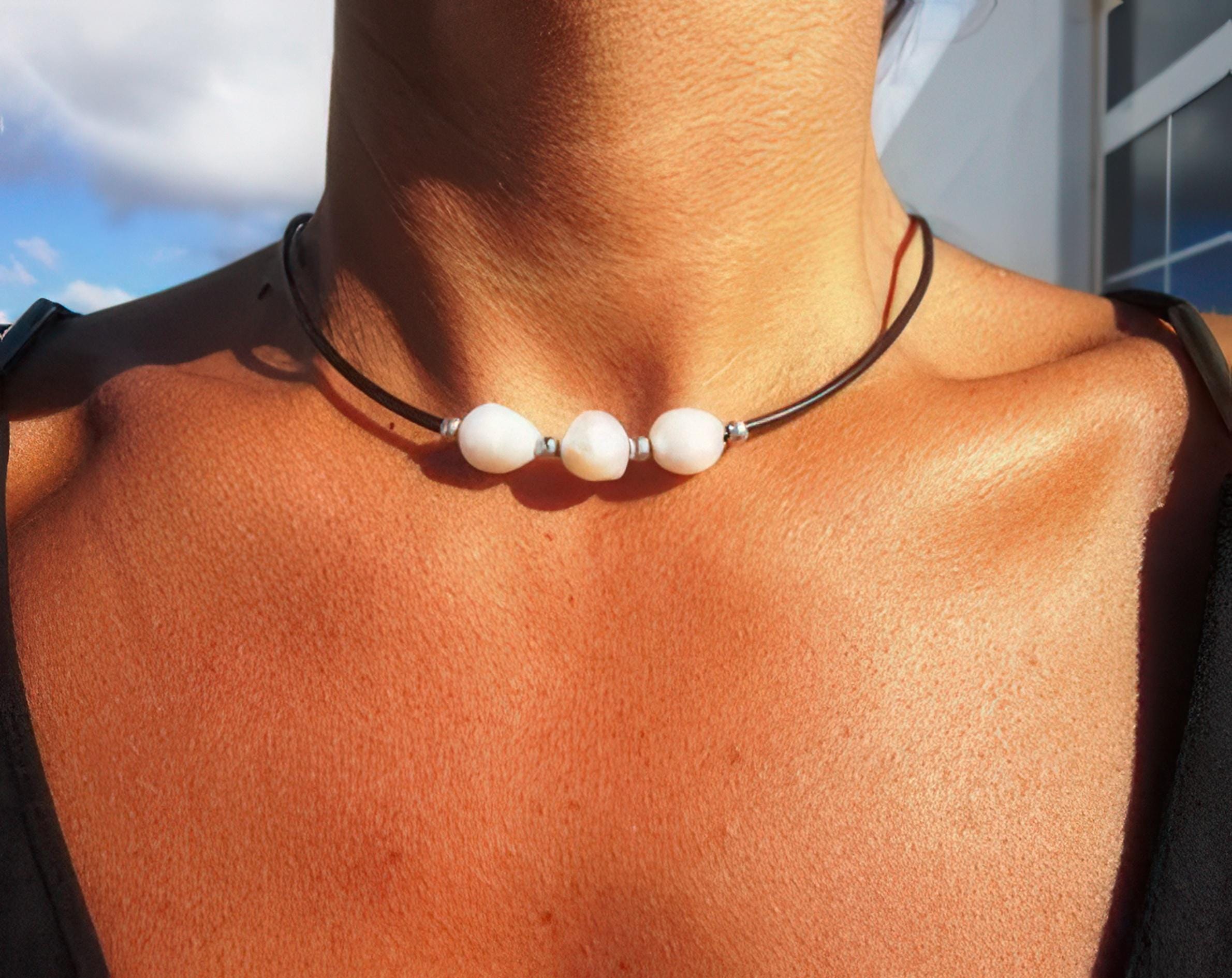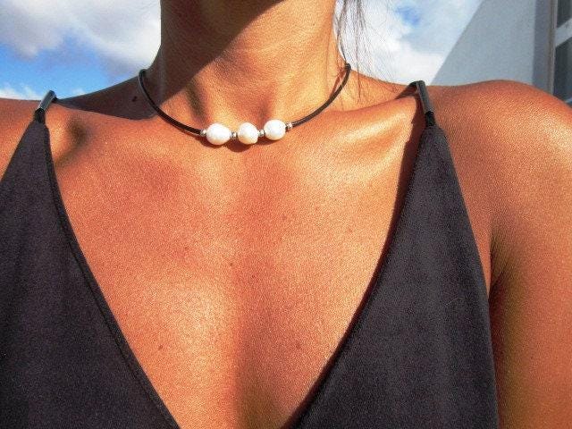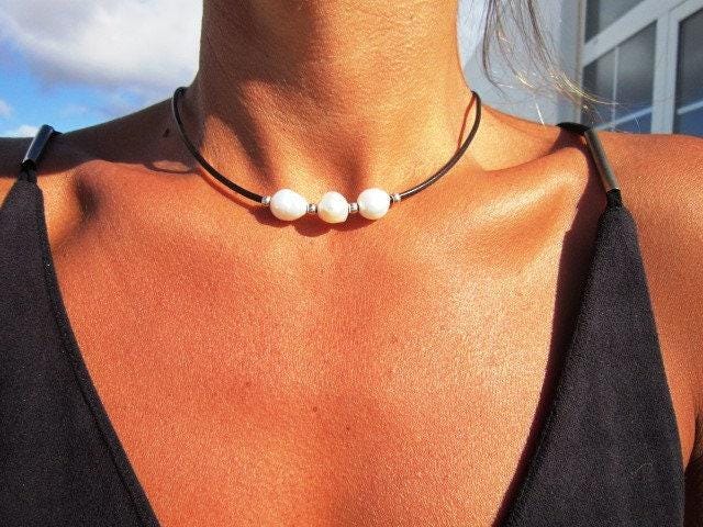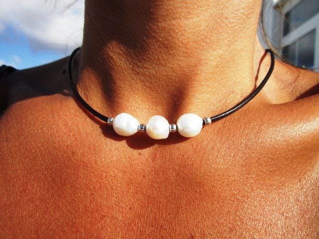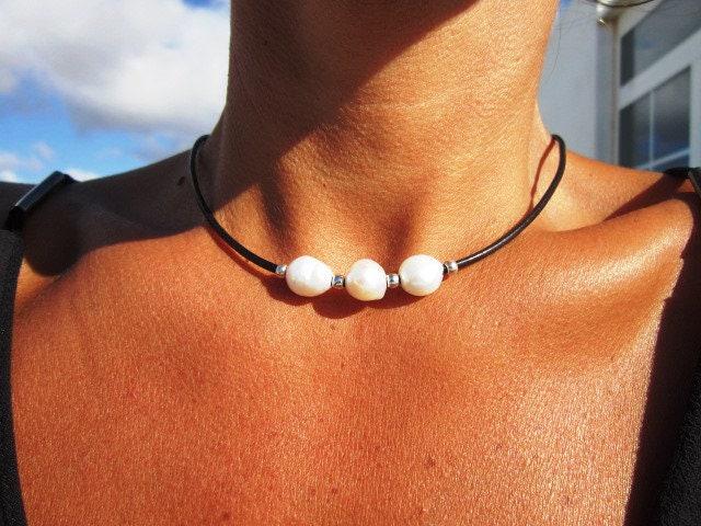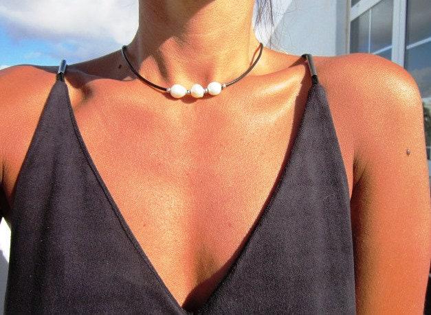 Leather necklace with fresh water pearls and silver beads, pearl choker necklace.natural pearl jewelry. An everyday fashion jewelry !! necklaces for women, silver jewelry, leather necklace, pearl necklace, mother of pearl personalized leather jewelry, original design by kekugi.