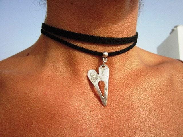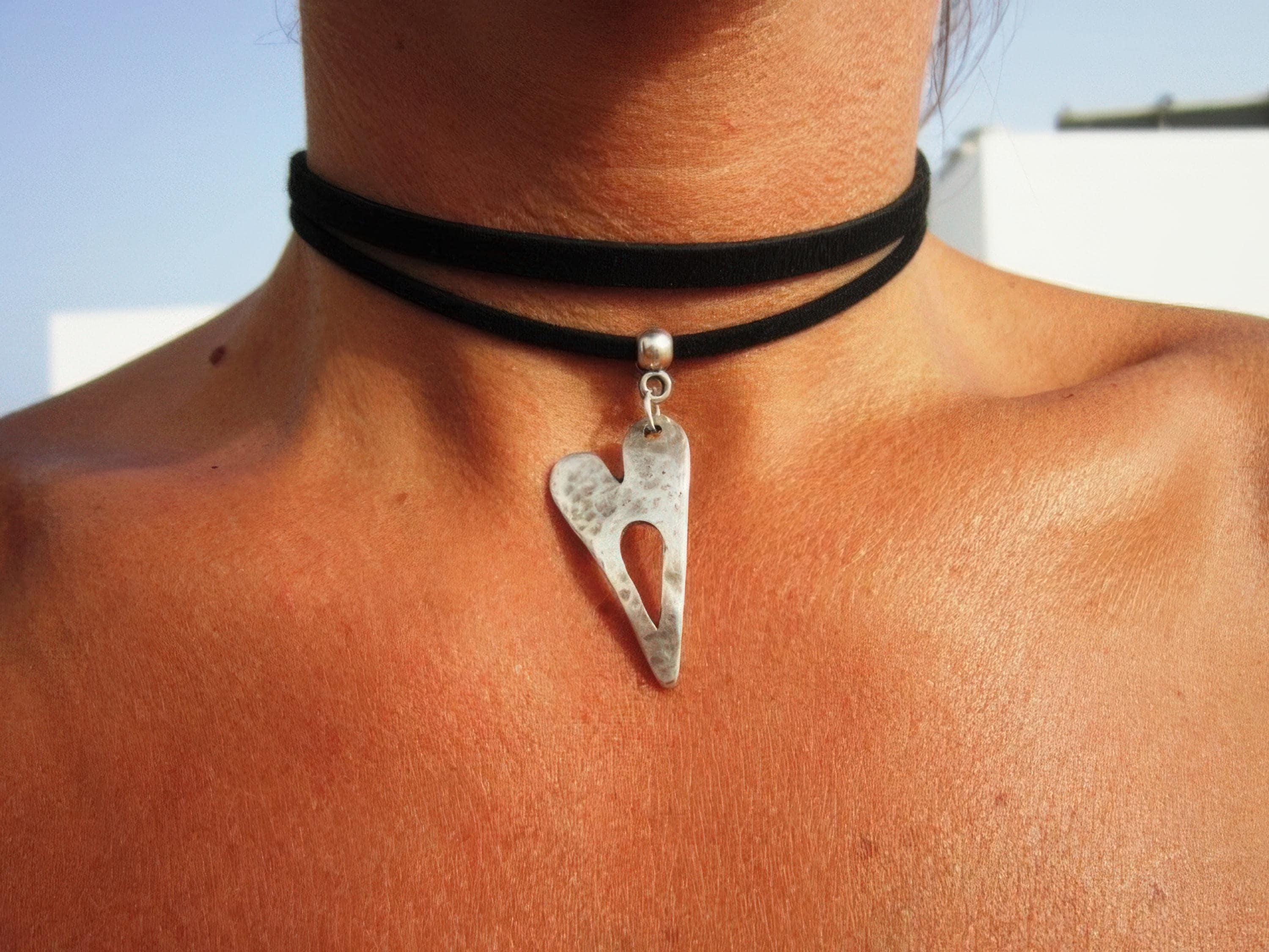 Silver necklaces for women made to size to match your style. Designed as a delicate charm leather and silver choker necklace eternity collar.