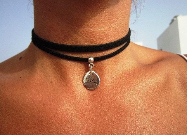Silver necklaces for women made to size to match your style. Designed as a delicate charm leather and silver choker necklace eternity collar.