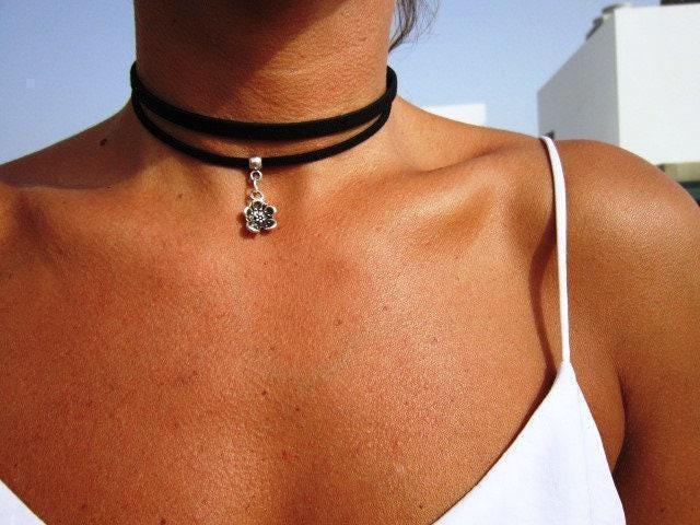 Silver necklaces for women made to size to match your style. Designed as a delicate charm leather and silver choker necklace eternity collar.