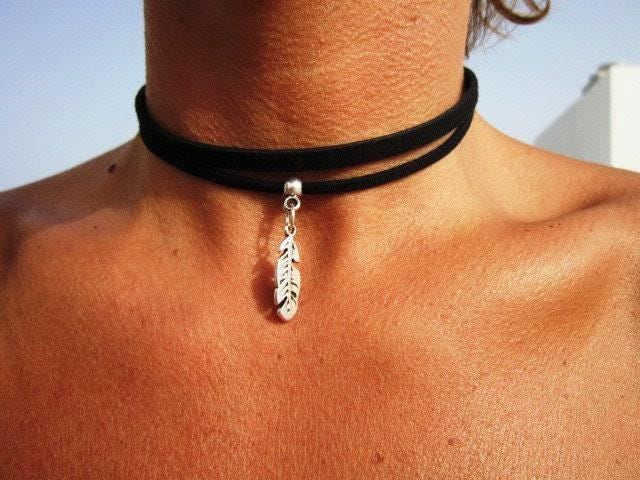 Silver necklaces for women made to size to match your style. Designed as a delicate charm leather and silver choker necklace eternity collar.