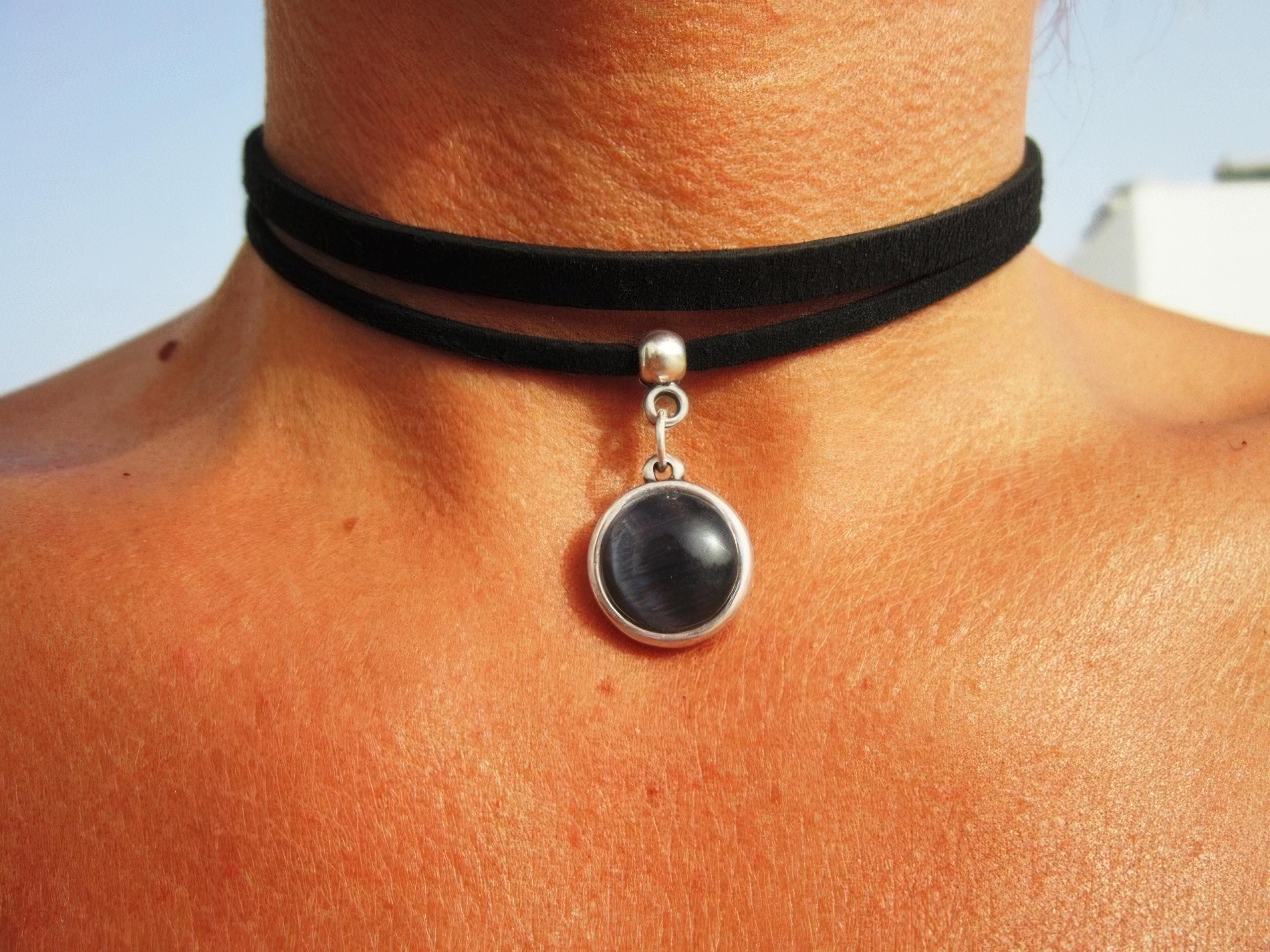 Silver necklaces for women made to size to match your style. Designed as a delicate charm leather and silver choker necklace eternity collar.
