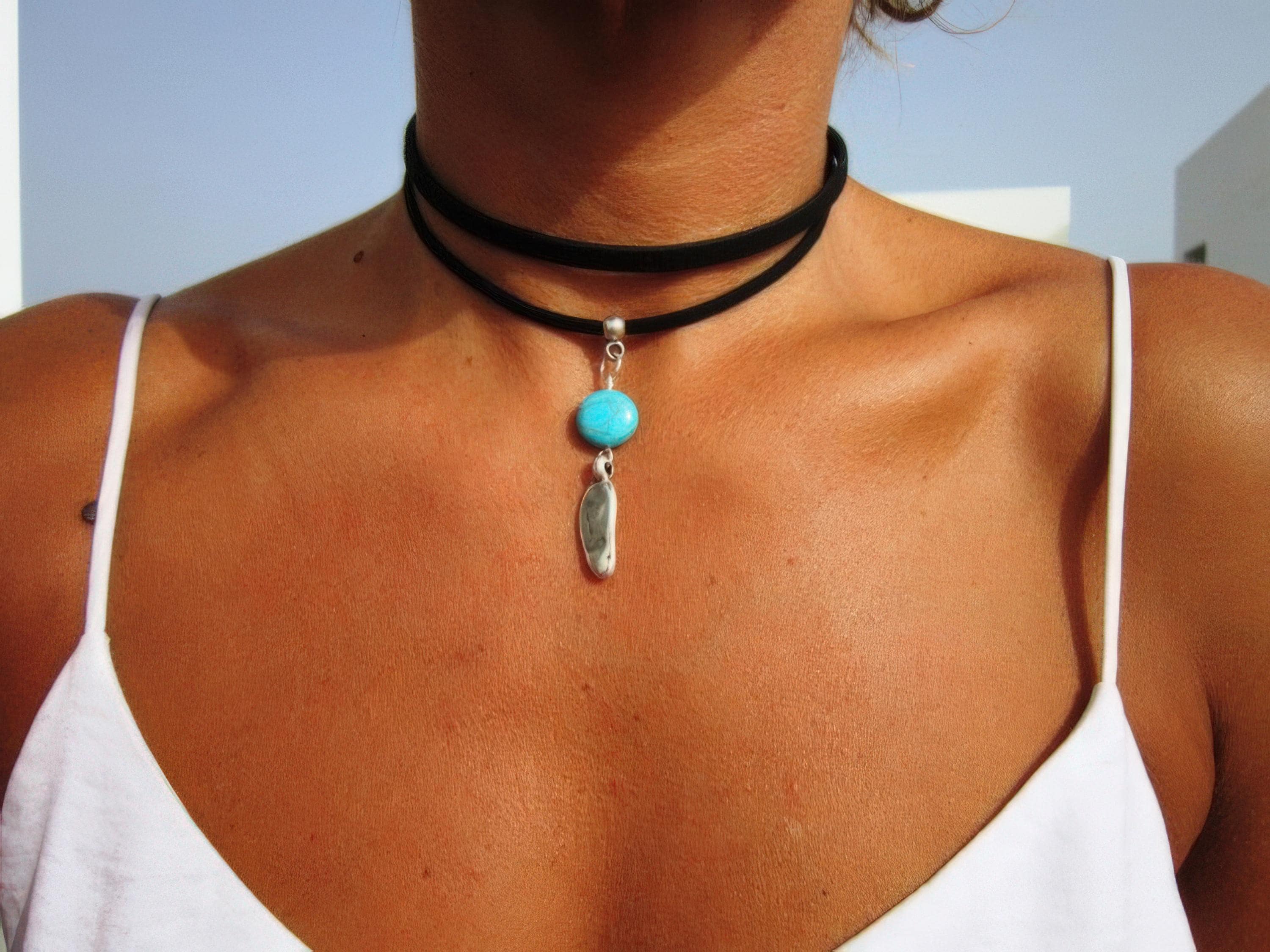 Silver necklaces for women made to size to match your style. Designed as a delicate charm leather and silver choker necklace eternity collar.