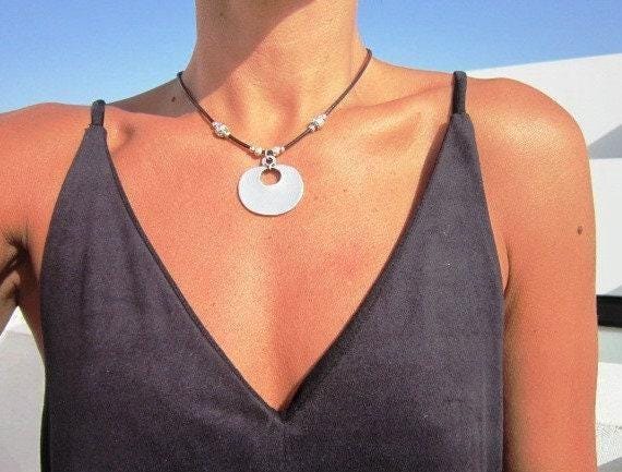 ♥ This Statement simple leather and silver beaded pendant necklace is part of our best selling items, a perfect blend of timeless style handmade jewelry. Silver necklaces for women made to size to match your style. Designed as a delicate charm necklace, a layered pendant necklace or a bold Couples necklace, it’s available in multiple lengths to match your style. at KEKUGI you can find pendant necklaces, beaded necklaces, charm necklaces, choker necklaces, multi-strand layered necklaces and lariat & Y necklaces, unique bohemian jewelry Best selling items designs.