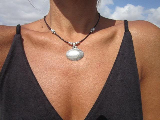 ♥ This Statement leather and silver beaded pendant necklace is part of our best selling items, a perfect blend of timeless style handmade jewelry. Silver necklaces for women made to size to match your style. Designed as a delicate charm mama necklace, a layered pendant necklace or a bold Couples necklace, it’s available in multiple lengths to match your style. at KEKUGI you can find pendant necklaces, beaded necklaces, charm necklaces, choker necklaces, multi-strand layered necklaces and lariat & Y necklaces, unique bohemian jewelry Best selling items designs.