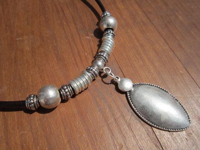 ♥ This Statement Personalized leather and silver beaded pendant necklace is part of our best selling items, a perfect blend of timeless style handmade jewelry. Silver necklaces for women made to size to match your style. Designed as a delicate charm necklace, a layered pendant necklace or a bold Couples necklace, it’s available in multiple lengths to match your style. at KEKUGI you can find pendant necklaces, beaded necklaces, charm necklaces, choker necklaces, multi-strand layered necklaces and lariat & Y necklaces, unique bohemian jewelry Best selling items designs.
