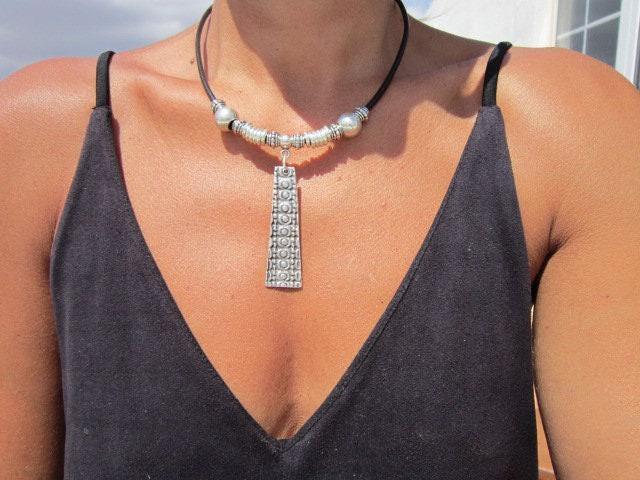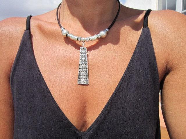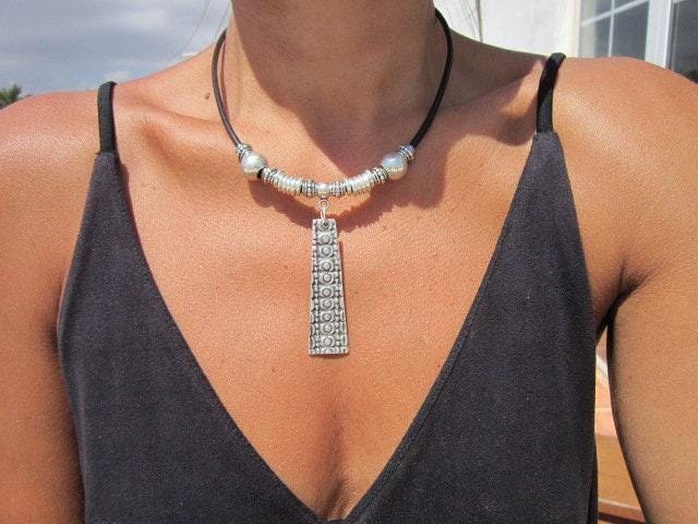 ♥ This Statement leather and silver beaded pendant necklace is part of our best selling items, a perfect blend of timeless style handmade jewelry. Silver necklaces for women made to size to match your style. Designed as a delicate charm necklace, a layered pendant necklace or a bold Couples necklace, it’s available in multiple lengths to match your style. at KEKUGI you can find pendant necklaces, beaded necklaces, charm necklaces, choker necklaces, multi-strand layered necklaces and lariat & Y necklaces, unique bohemian jewelry Best selling items designs.