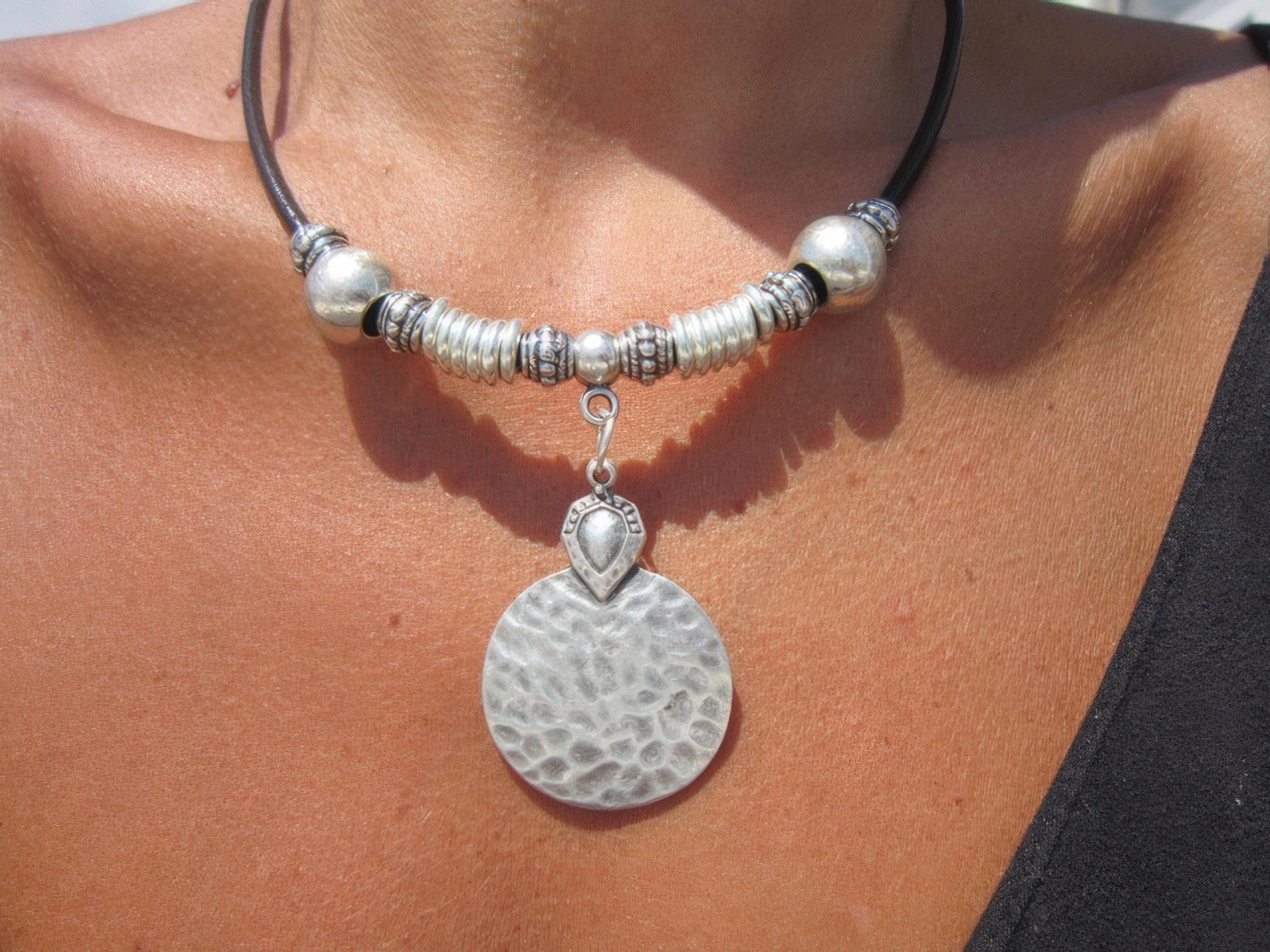 ♥ This Statement leather and silver beaded pendant necklace is part of our best selling items, a perfect blend of timeless style handmade jewelry for mom. Silver necklaces for women made to size to match your style. Designed as a delicate charm necklace, a layered pendant necklace or a bold Couples necklace, it’s available in multiple lengths to match your style. at KEKUGI you can find pendant necklaces, beaded necklaces, charm necklaces, choker necklaces, multi-strand layered necklaces and lariat & Y necklaces, unique bohemian jewelry Best selling items designs.