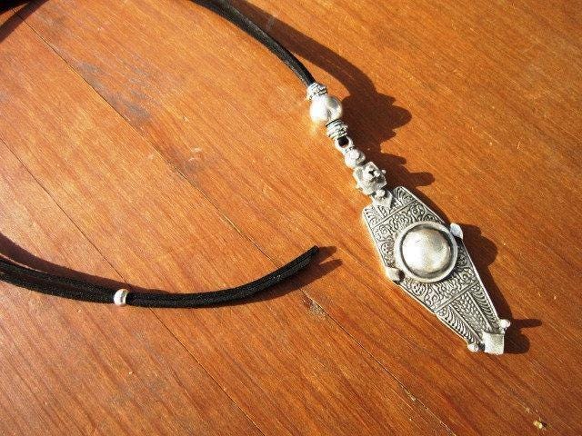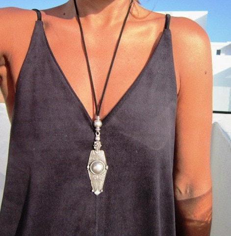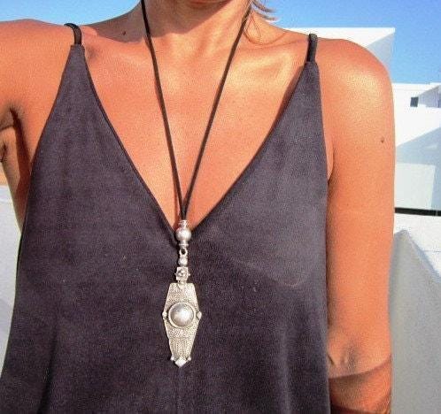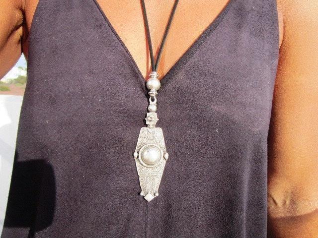 Statement Silver Chunky Pendant leather Necklace • Bohemian Neotribal Jewelry • Custom necklace Best Selling Items • Host Gift for Her