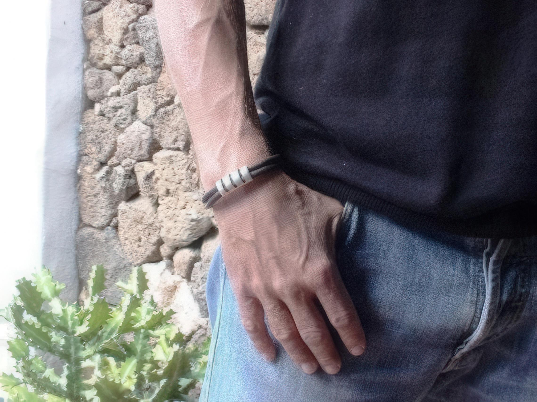 ♥ This elegant silver mens bracelet is part of our best selling items for mens jewelry, a perfect blend of timeless design and handmade jewelry. Designed as a classic leather charm bracelet, can be stacked together on a set of beaded bracelets to suit your style. Whether you're looking for a minimalist custom bracelet, a symbolic friendship bracelet, or a thoughtful jewelry gift, this piece can be personalized just for you. It makes a meaningful gifts for men, a special birthday gift, or a truly one-of-a-kind custom gift. Add your own touch to create personalized jewelry or a lasting piece of personalized gifts he’ll love.