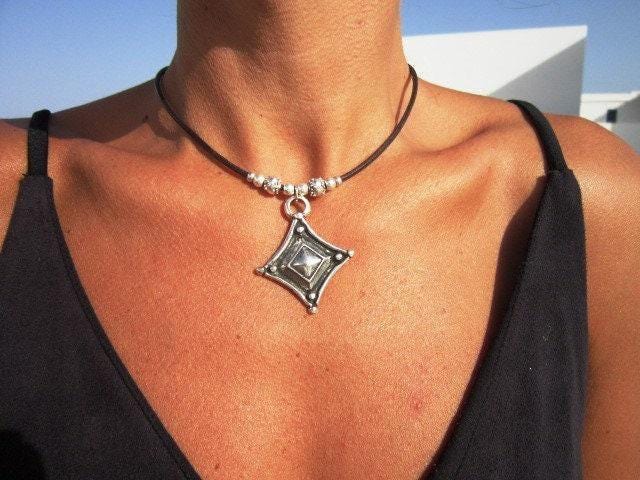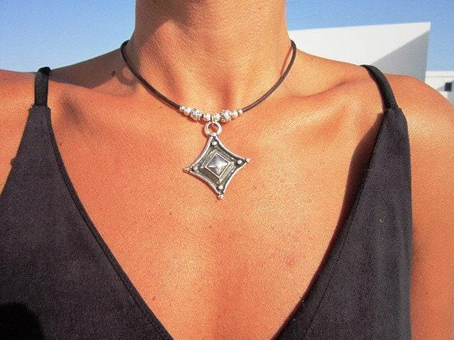 ♥ This Statement leather and silver beaded pendant necklace is part of our best selling items, a perfect blend of timeless style handmade jewelry. Silver necklaces for women made to size to match your style. Designed as a delicate charm necklace, a layered pendant necklace or a bold Couples necklace, it’s available in multiple lengths to match your style. at KEKUGI you can find pendant necklaces, beaded necklaces, charm necklaces, choker necklaces, multi-strand layered necklaces and lariat & Y necklaces, unique bohemian jewelry Best selling items designs.
