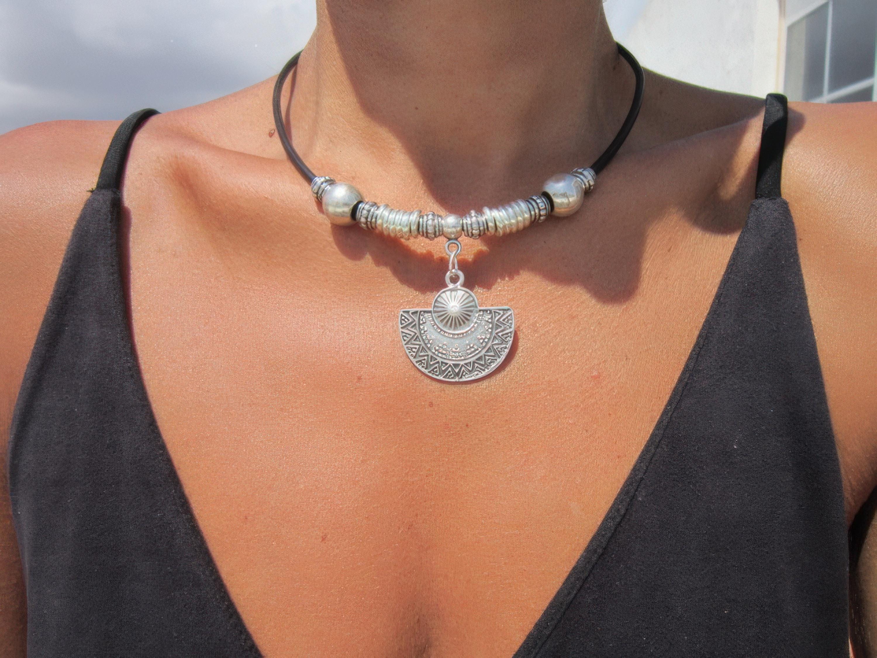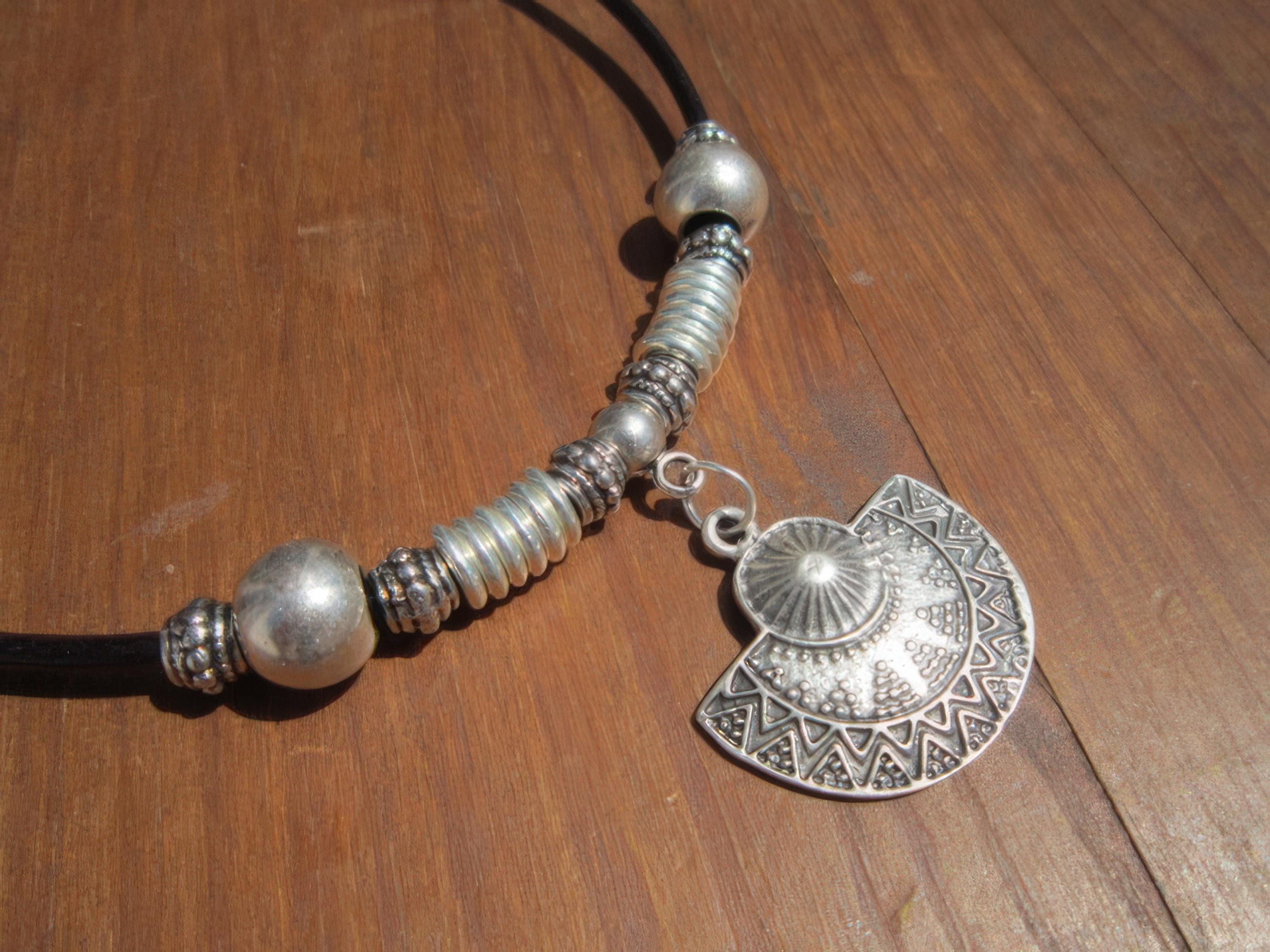 ♥ This Statement leather and silver beaded pendant necklace is part of our best selling items, a perfect blend of timeless style handmade jewelry. Silver necklaces for women made to size to match your style. Designed as a delicate charm necklace, a layered pendant necklace or a bold Couples necklace, it’s available in multiple lengths to match your style. at KEKUGI you can find pendant necklaces, beaded necklaces, charm necklaces, choker necklaces, multi-strand layered necklaces and lariat & Y necklaces, unique bohemian jewelry Best selling items designs.