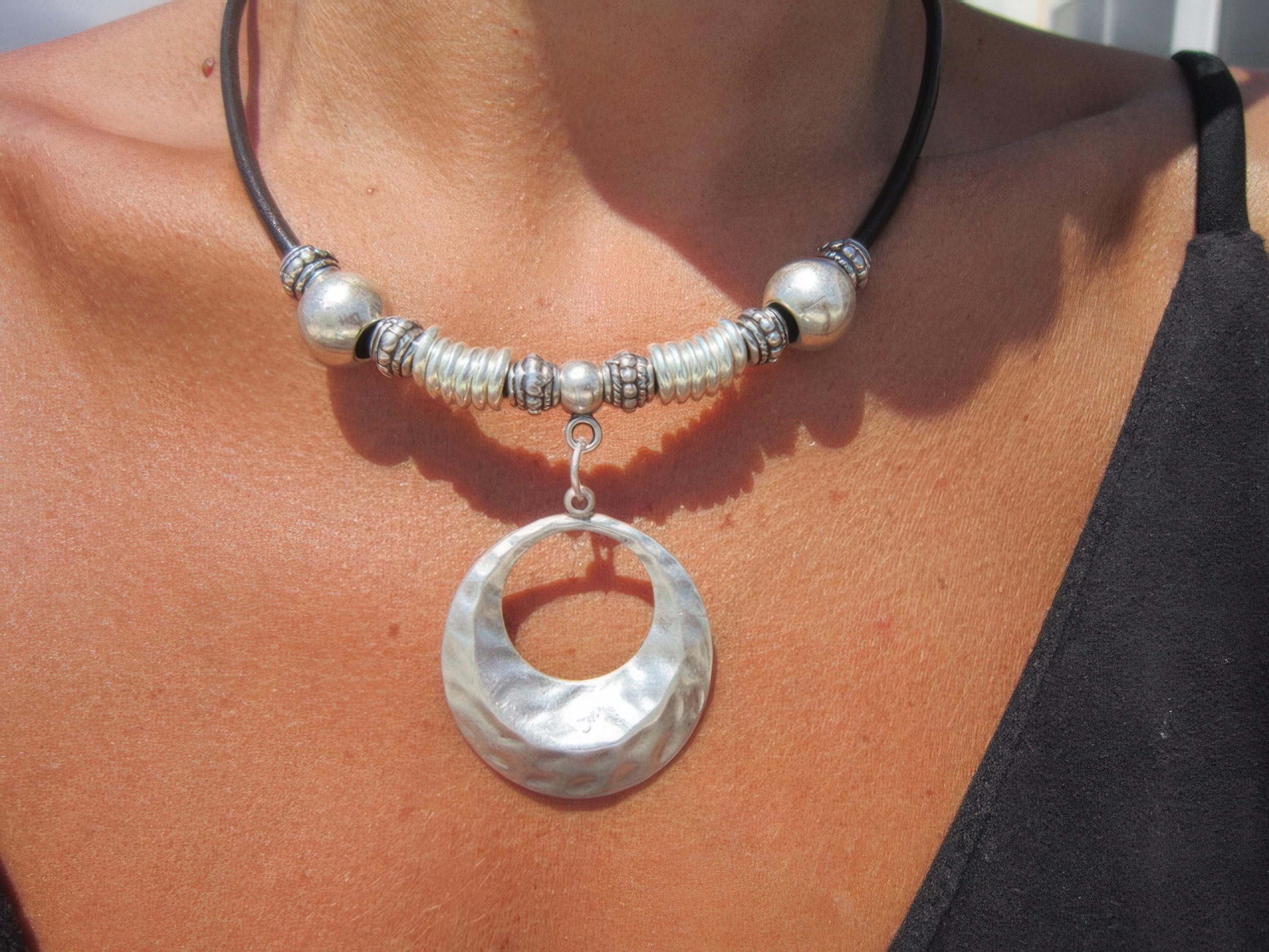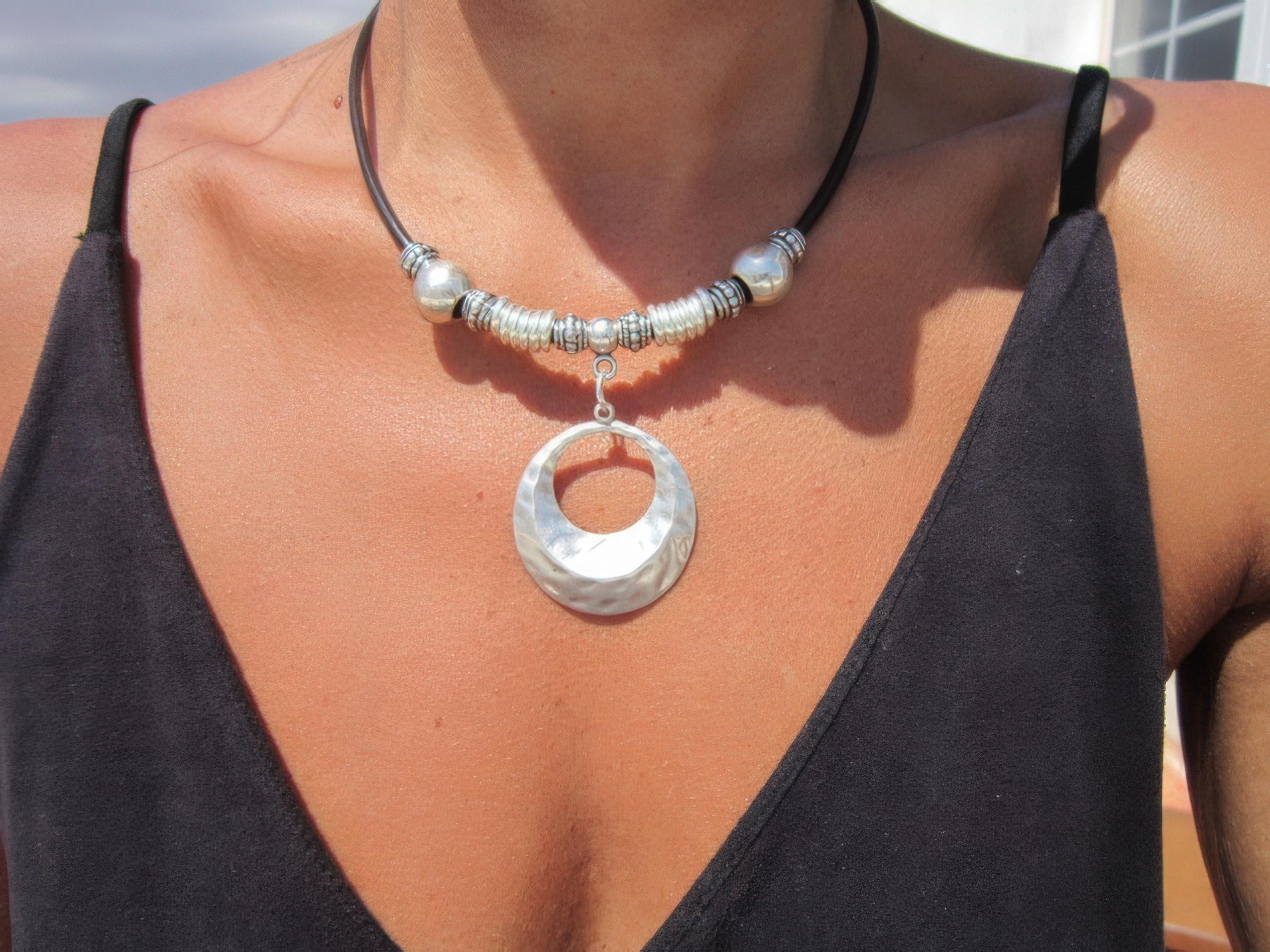 ♥ This Statement leather and silver beaded pendant necklace is part of our best selling items, a perfect blend of timeless style handmade jewelry. Silver necklaces for women made to size to match your style. Designed as a delicate charm necklace, a layered pendant necklace or a bold Couples necklace, it’s available in multiple lengths to match your style. at KEKUGI you can find pendant necklaces, beaded necklaces, charm necklaces, choker necklaces, multi-strand layered necklaces and lariat & Y necklaces, unique bohemian jewelry Best selling items designs.