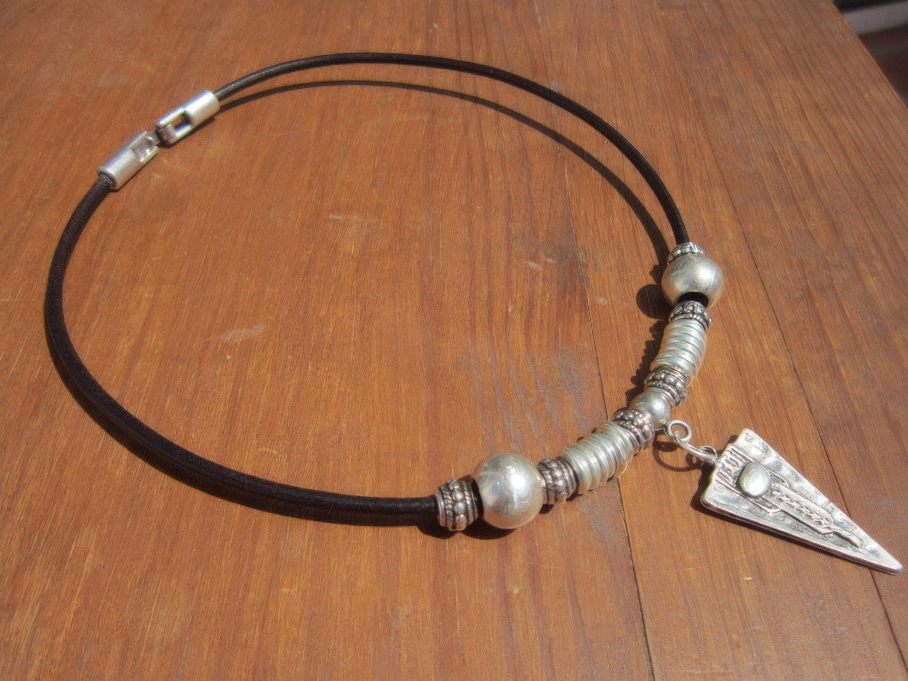 ♥ This Statement leather and silver beaded pendant necklace is part of our best selling items, a perfect blend of timeless style handmade jewelry. Silver necklaces for women made to size to match your style. Designed as a delicate charm necklace, a layered pendant necklace or a bold Couples necklace, it’s available in multiple lengths to match your style. at KEKUGI you can find pendant necklaces, beaded necklaces, charm necklaces, choker necklaces, multi-strand layered necklaces and lariat & Y necklaces, unique bohemian jewelry Best selling items designs.