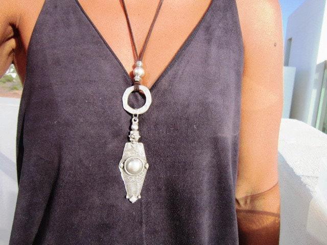 ♥ Elevate your style with these Chunky Statement Pendant Necklaces, Silver Beaded and Leather Long Charm necklace, a bold statement piece for everyday style.It is part of our best selling items, a perfect blend of timeless style handmade neotribal jewelry. Silver Chunky charm necklace for couples, necklaces for women made to size to match your style. Designed as a delicate charm necklace, a layered pendant necklace, it’s available in multiple lengths to match your style. at KEKUGI you can find pendant necklaces, beaded necklaces, charm necklaces, choker necklaces, multi-strand layered necklaces and lariat & Y necklaces, unique bohemian jewelry Best selling items designs gift for Her, birthday gift or personalized gifts.
