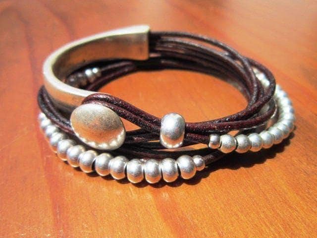 Leather & Silver Charm Beaded Bracelet • Handmade Jewelry Gift for Her • Custom Bracelet Gift • Personalized Jewelry Gifts by Kekugi