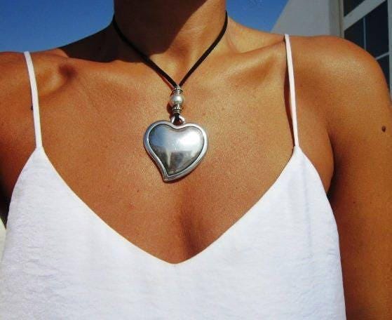 ♥ Elevate your style with this Chunky Statement Pendant Necklaces, a Silver beaded Heart necklace on leather, a bold statement piece for everyday style.It is part of our best selling items, a perfect blend of timeless style handmade jewelry. Silver Chunky charm necklace for couples, necklaces for women made to size to match your style. Designed as a delicate charm necklace, a layered pendant necklace, it’s available in multiple lengths to match your style. at KEKUGI you can find pendant necklaces, beaded necklaces, charm necklaces, choker necklaces, multi-strand layered necklaces and lariat & Y necklaces, unique bohemian jewelry Best selling items designs gift for Her, birthday gift or personalized gifts.