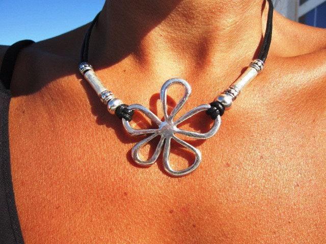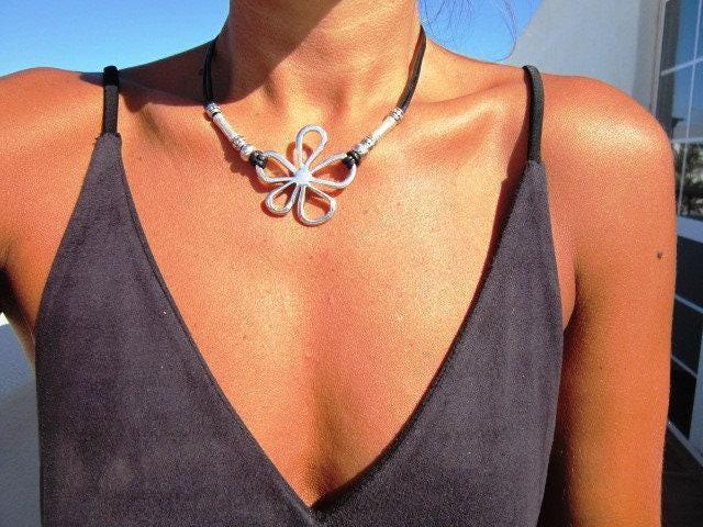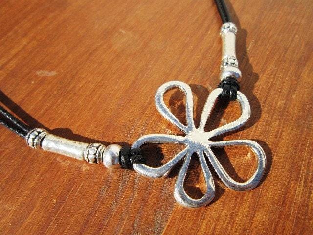 ♥ This Statement leather and silver beaded flower pendant necklace is part of our best selling items, a perfect blend of timeless style handmade jewelry. Silver necklaces for women made to size to match your style. Designed as a delicate charm necklace, a layered pendant necklace or a bold Couples necklace, it’s available in multiple lengths to match your style. at KEKUGI you can find pendant necklaces, beaded necklaces, charm necklaces, choker necklaces, multi-strand layered necklaces and lariat & Y necklaces, unique bohemian jewelry Best selling items designs.