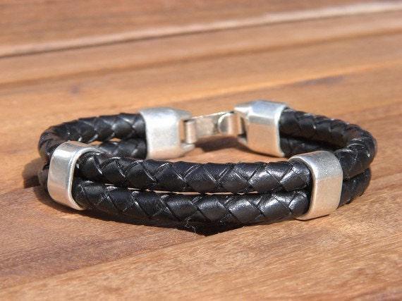 Leather & Silver Mens Bracelet • Matching Couple Bracelets • Custom mens bracelet Gift for him • Best Selling Items jewelry by Kekugi