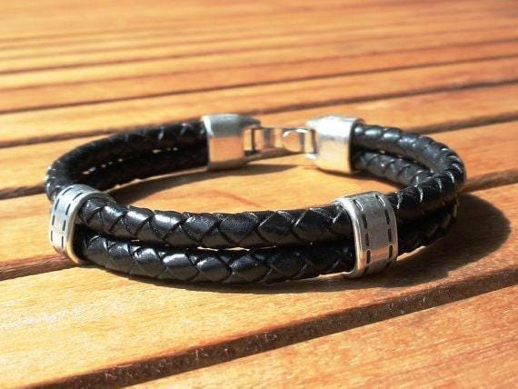 Leather & Silver Mens Bracelet • Matching Couple Bracelets • Custom mens bracelet Gift for him • Best Selling Items jewelry by Kekugi