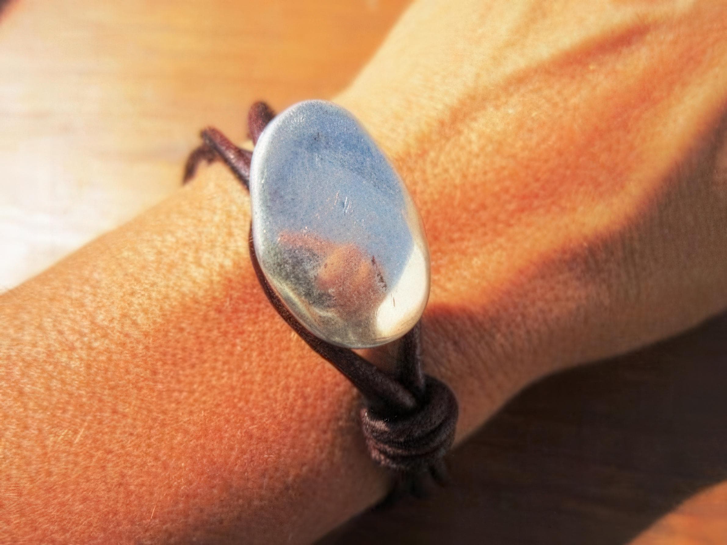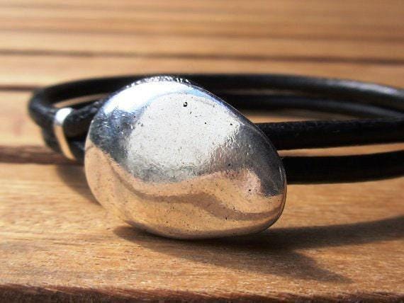 To preserve the look of your leather and silver jewelry, avoid water, cosmetics, and cleaning products. Always store your jewelryin a dry place and use a soft cloth to clean silver parts. Leather may naturally darken slightly over time, giving your jewelry a unique, lived-in feel.