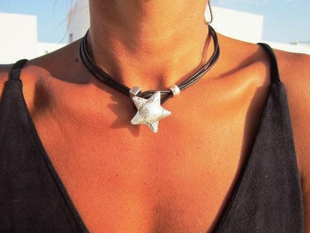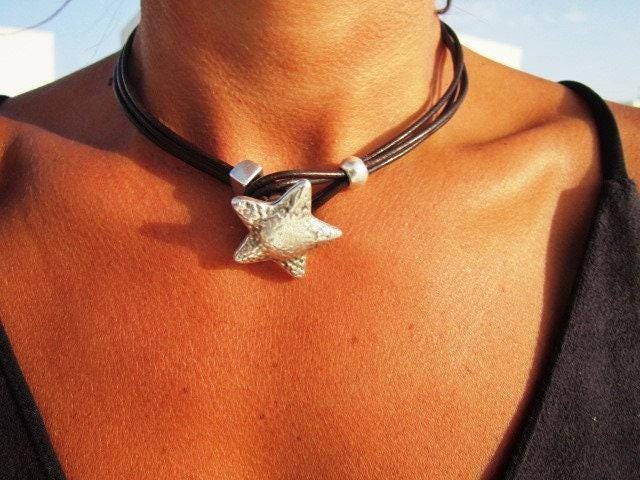 ♥ This Statement silver beaded leather choker star necklace is part of our best selling items, featuring a starfish necklace in this design, a perfect blend of timeless style handmade beach Shell Summer jewelry. Silver necklaces for women made to size to match your style. Designed as a delicate charm necklace, a layered pendant necklace, or a bold statement necklace perfect as Couples Necklace it’s available in multiple lengths to match your style. at KEKUGI you can find pendant necklaces, beaded necklaces, charm necklaces, choker necklaces, multi-strand necklaces and lariat & Y necklaces, unique bohemian summer jewelry designs.