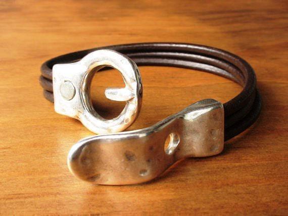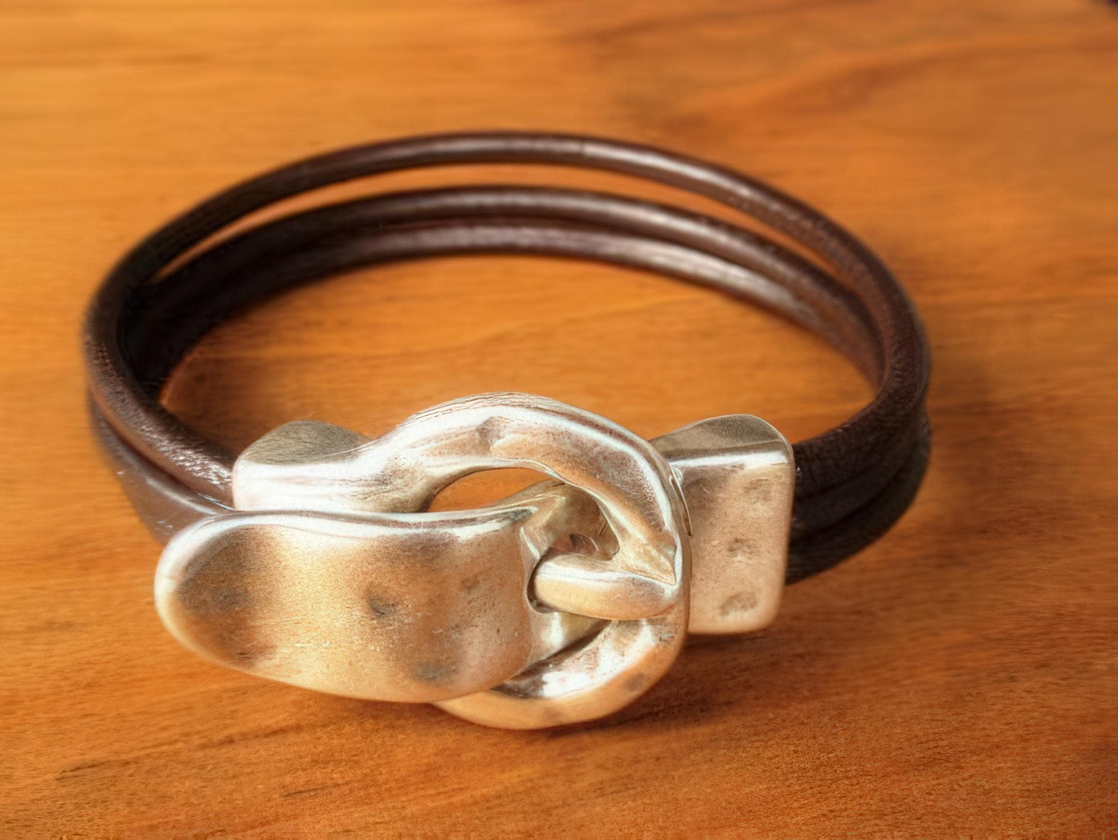 To preserve the look of your leather and silver jewelry, avoid water, cosmetics, and cleaning products. Always store your jewelryin a dry place and use a soft cloth to clean silver parts. Leather may naturally darken slightly over time, giving your jewelry a unique, lived-in feel.