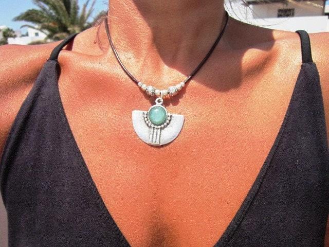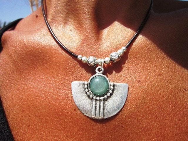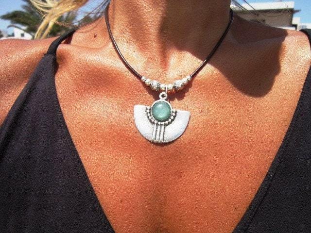 • The Stone is a Green Resin cabochon securely set onto the pendant base.