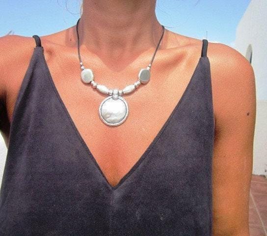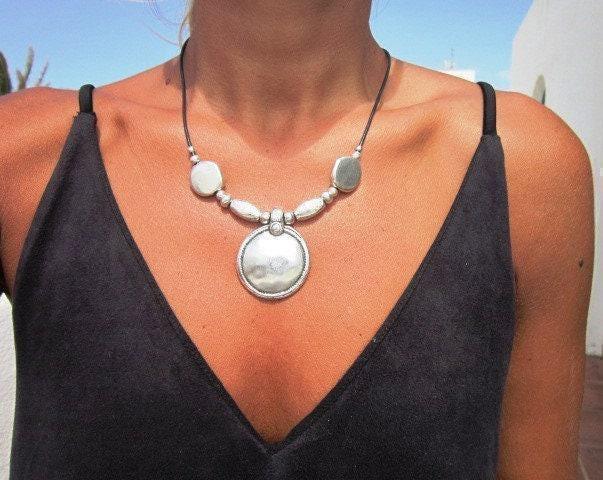 ♥ Elevate your style with these this Statement beaded pendant necklace, a Charm necklace made of silver and leather, a bold statement piece for everyday style. It is part of our best selling items, a perfect blend of timeless style handmade Neotribal jewelry. Designed as a delicate charm couples necklace, a layered pendant necklace, or a bold statement necklace perfect as Couples Necklace it’s available in multiple lengths to match your style. at KEKUGI you can find pendant necklaces, beaded necklaces, charm necklaces, choker necklaces, multi-strand necklaces and lariat & Y necklaces, unique bohemian jewelry Best selling items designs.