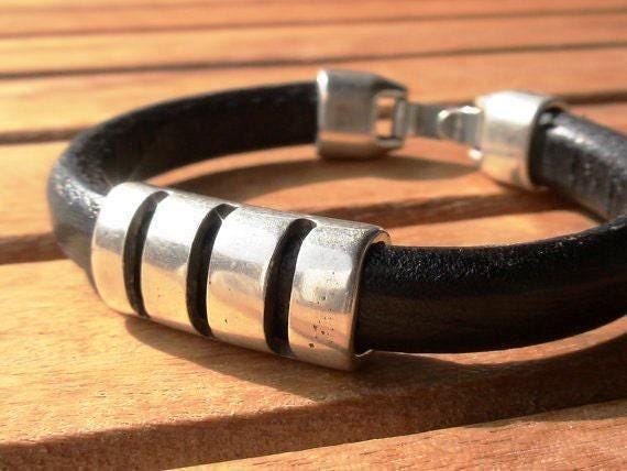 ♥ This elegant silver mens bracelet is part of our best selling items for mens jewelry, a perfect blend of timeless design and handmade jewelry. Designed as a classic leather charm bracelet, can be stacked together on a set of beaded bracelets to suit your style. Whether you're looking for a minimalist custom bracelet, a symbolic friendship bracelet, or a thoughtful jewelry gift, this piece can be personalized just for you. It makes a meaningful gifts for men, a special birthday gift, or a truly one-of-a-kind custom gift. Add your own touch to create personalized jewelry or a lasting piece of personalized gifts he’ll love.