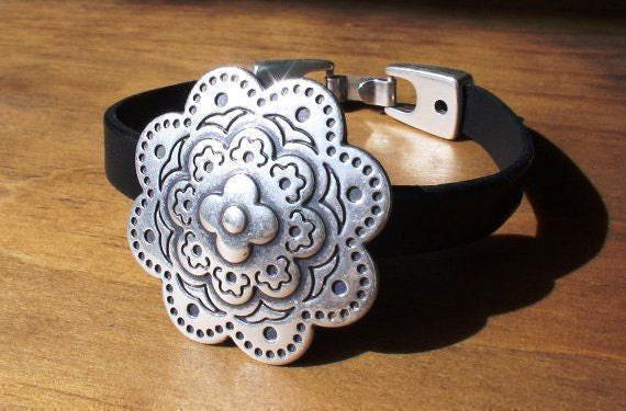 Bohemian Leather and Silver Beaded Bracelet Jewelry • Handmade Personalized Jewelry Gifts • Custom Bracelet Gift for Her by Kekugi
