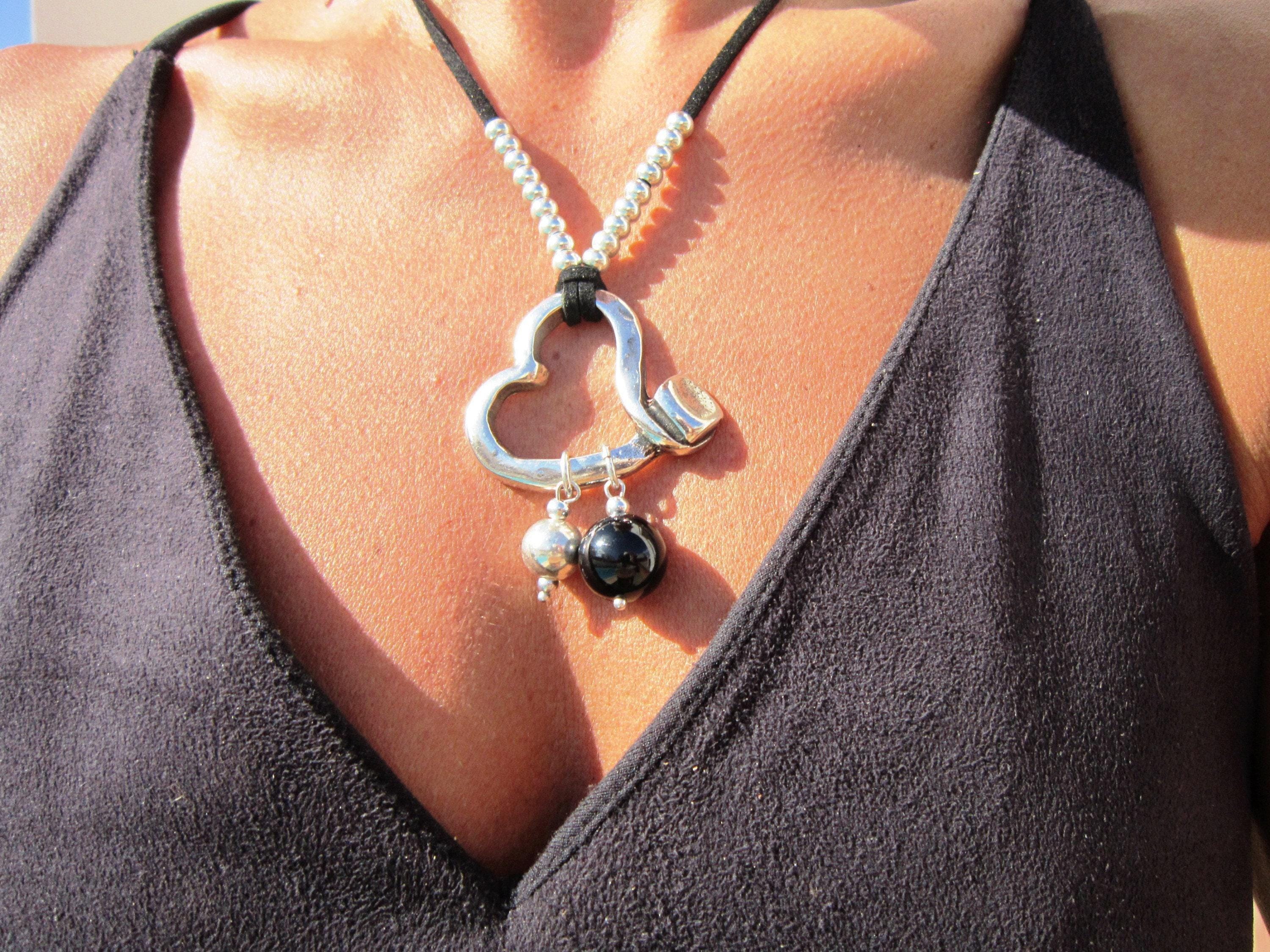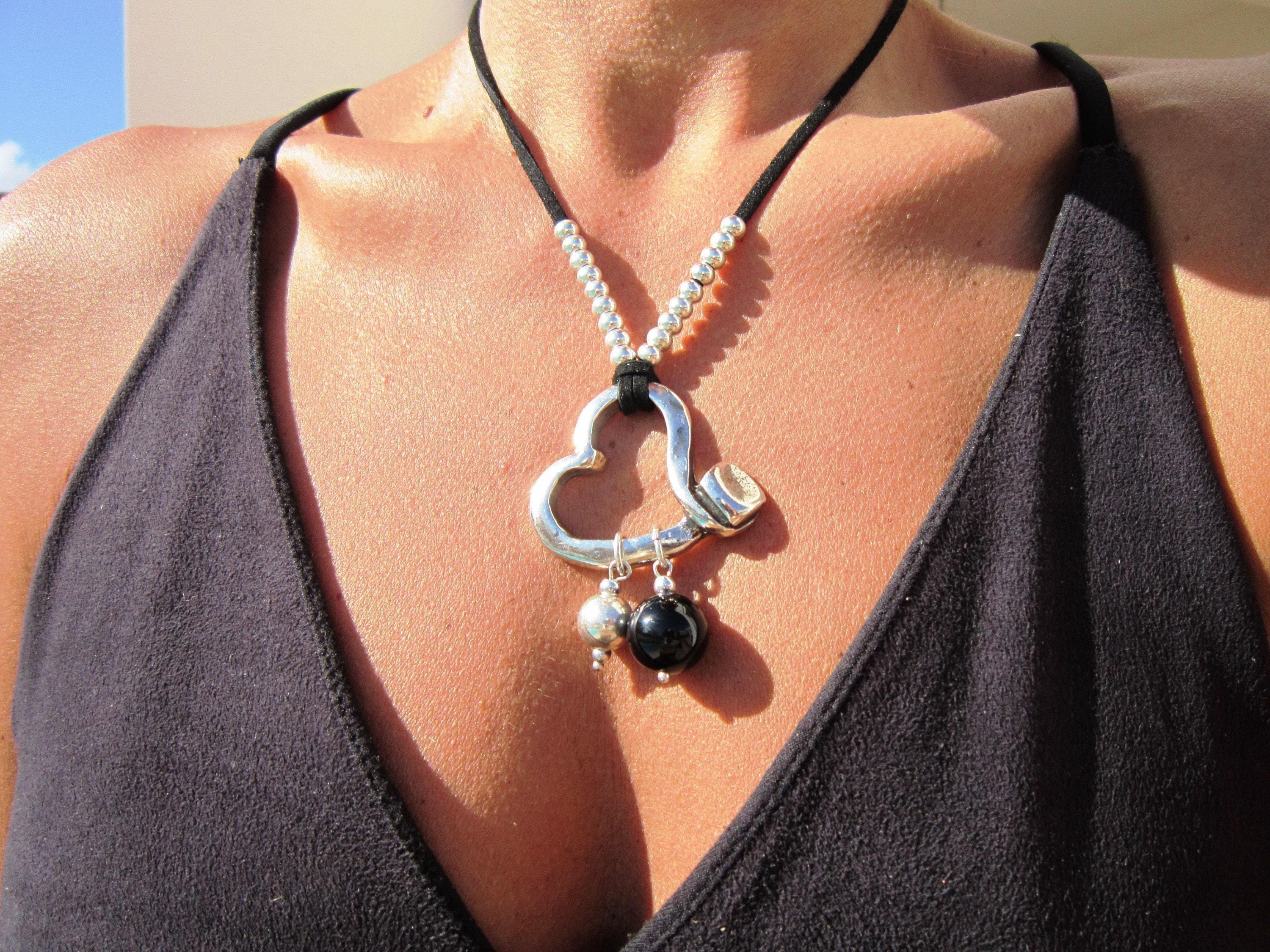 ♥ Elevate your style with this Chunky Statement Pendant Necklaces, a Silver beaded Heart necklace on leather, a bold statement piece for everyday style.It is part of our best selling items, a perfect blend of timeless style handmade jewelry. Silver Chunky charm necklace for couples, necklaces for women made to size to match your style. Designed as a delicate charm necklace, a layered pendant necklace, it’s available in multiple lengths to match your style. at KEKUGI you can find pendant necklaces, beaded necklaces, charm necklaces, choker necklaces, multi-strand layered necklaces and lariat & Y necklaces, unique bohemian jewelry Best selling items designs gift for Her, birthday gift or personalized gifts.