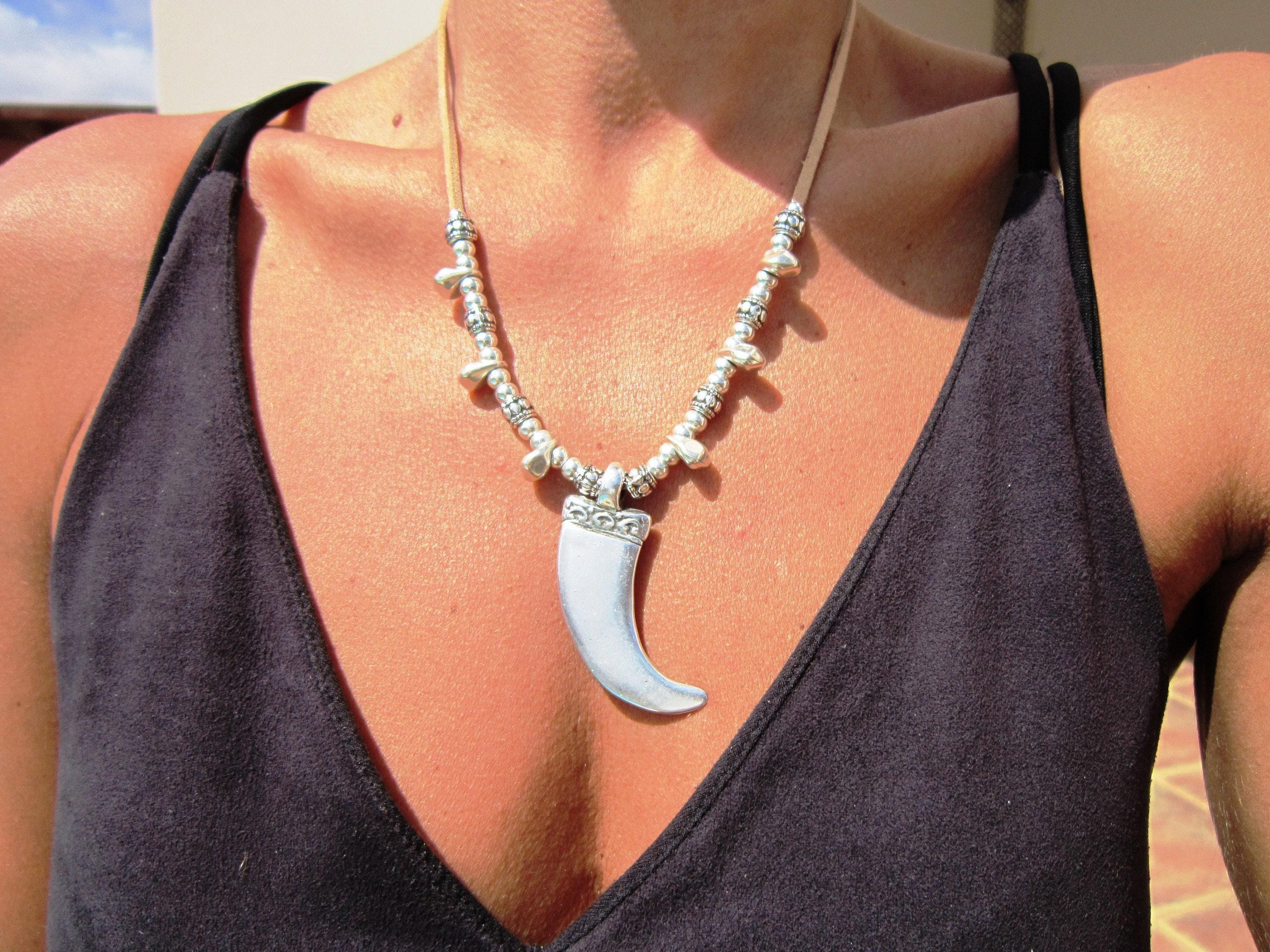 ♥ Elevate your style with this Chunky Statement Pendant Necklaces, a Silver beaded Horn necklace Charm on leather, a bold statement piece for everyday style. It is part of our best selling items, a perfect blend of timeless style handmade neotribal jewelry. Silver Chunky charm necklace for couples, necklaces for women made to size to match your style. Designed as a delicate charm necklace, a layered pendant necklace, it’s available in multiple lengths to match your style. at KEKUGI you can find pendant necklaces, beaded necklaces, charm necklaces, choker necklaces, multi-strand layered necklaces and lariat & Y necklaces, unique bohemian jewelry Best selling items designs gift for Her, birthday gift or personalized gifts.