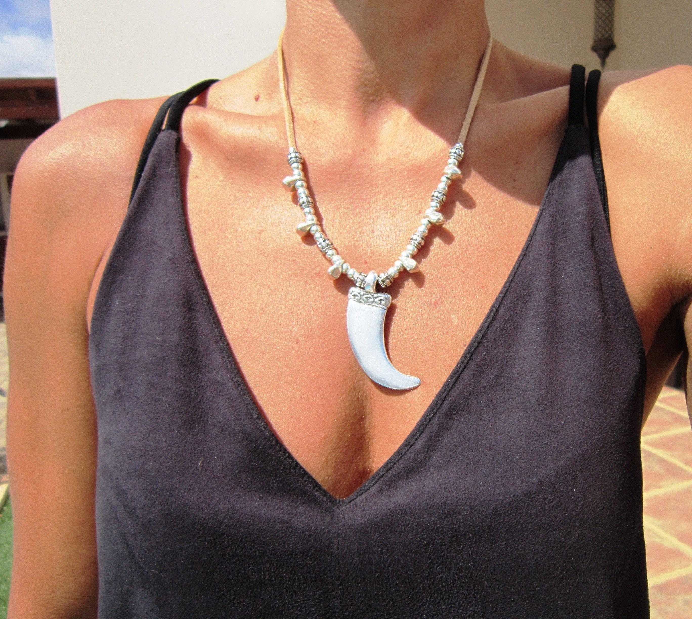♥ Elevate your style with this Chunky Statement Pendant Necklaces, a Silver beaded Horn necklace Charm on leather, a bold statement piece for everyday style. It is part of our best selling items, a perfect blend of timeless style handmade neotribal jewelry. Silver Chunky charm necklace for couples, necklaces for women made to size to match your style. Designed as a delicate charm necklace, a layered pendant necklace, it’s available in multiple lengths to match your style. at KEKUGI you can find pendant necklaces, beaded necklaces, charm necklaces, choker necklaces, multi-strand layered necklaces and lariat & Y necklaces, unique bohemian jewelry Best selling items designs gift for Her, birthday gift or personalized gifts.