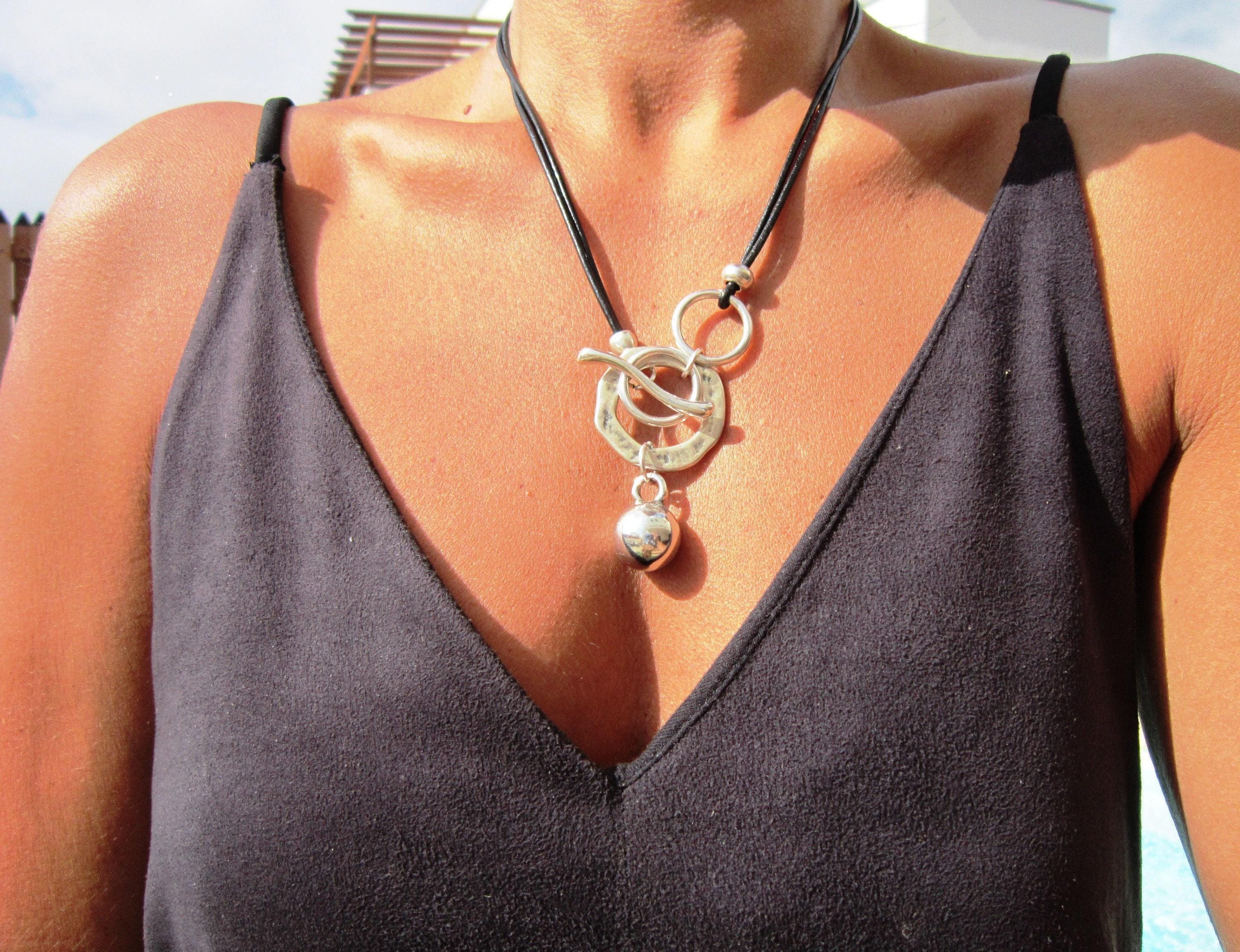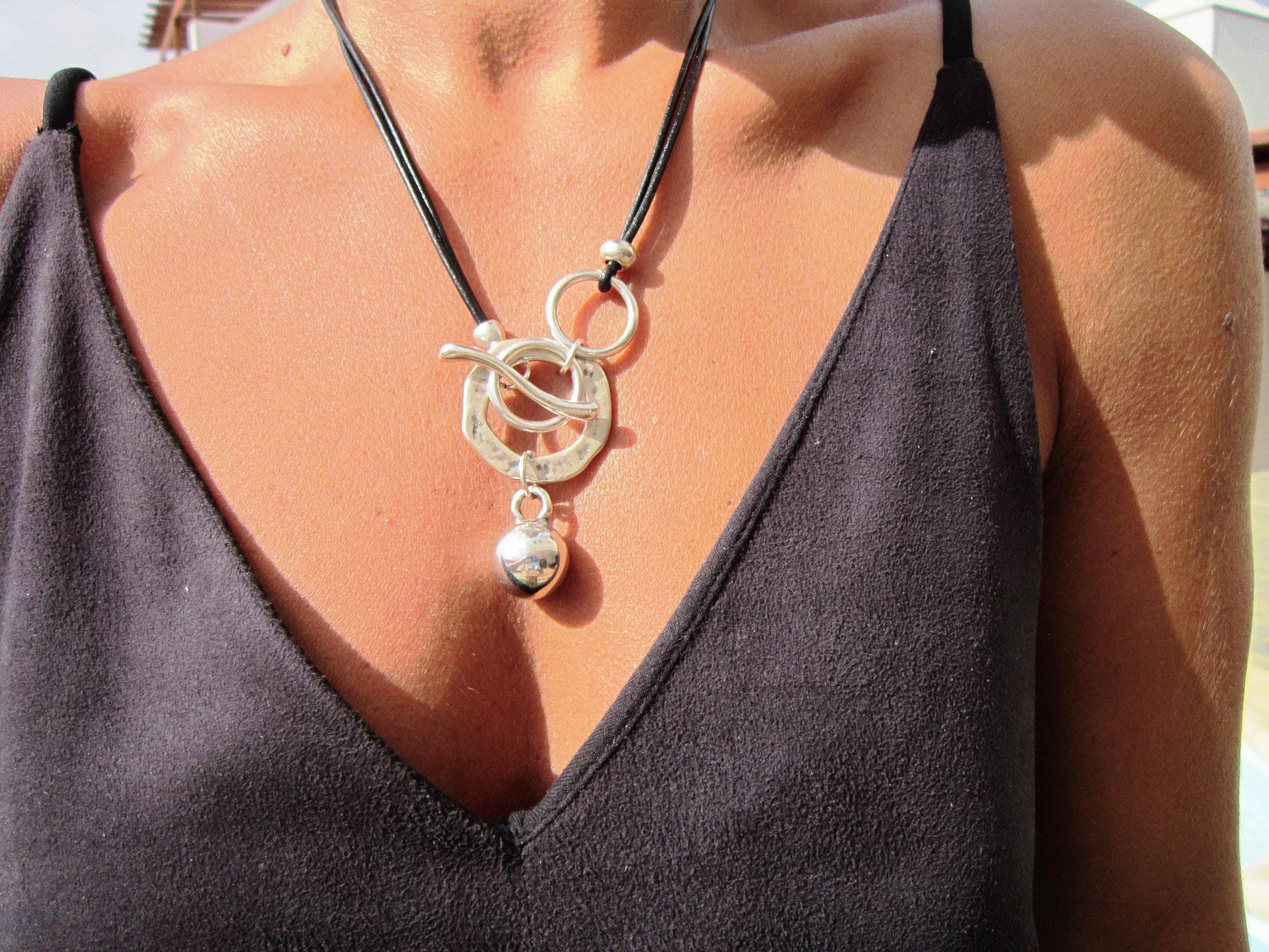 ♥ This Statement leather and silver beaded pendant ring necklace is part of our best selling items, a perfect blend of timeless style handmade jewelry. Silver necklaces for women made to size to match your style. Designed as a delicate charm necklace, a layered pendant necklace or a bold Couples necklace, it’s available in multiple lengths to match your style. at KEKUGI you can find pendant necklaces, beaded necklaces, charm necklaces, choker necklaces, multi-strand layered necklaces and lariat & Y necklaces, unique bohemian jewelry Best selling items designs.