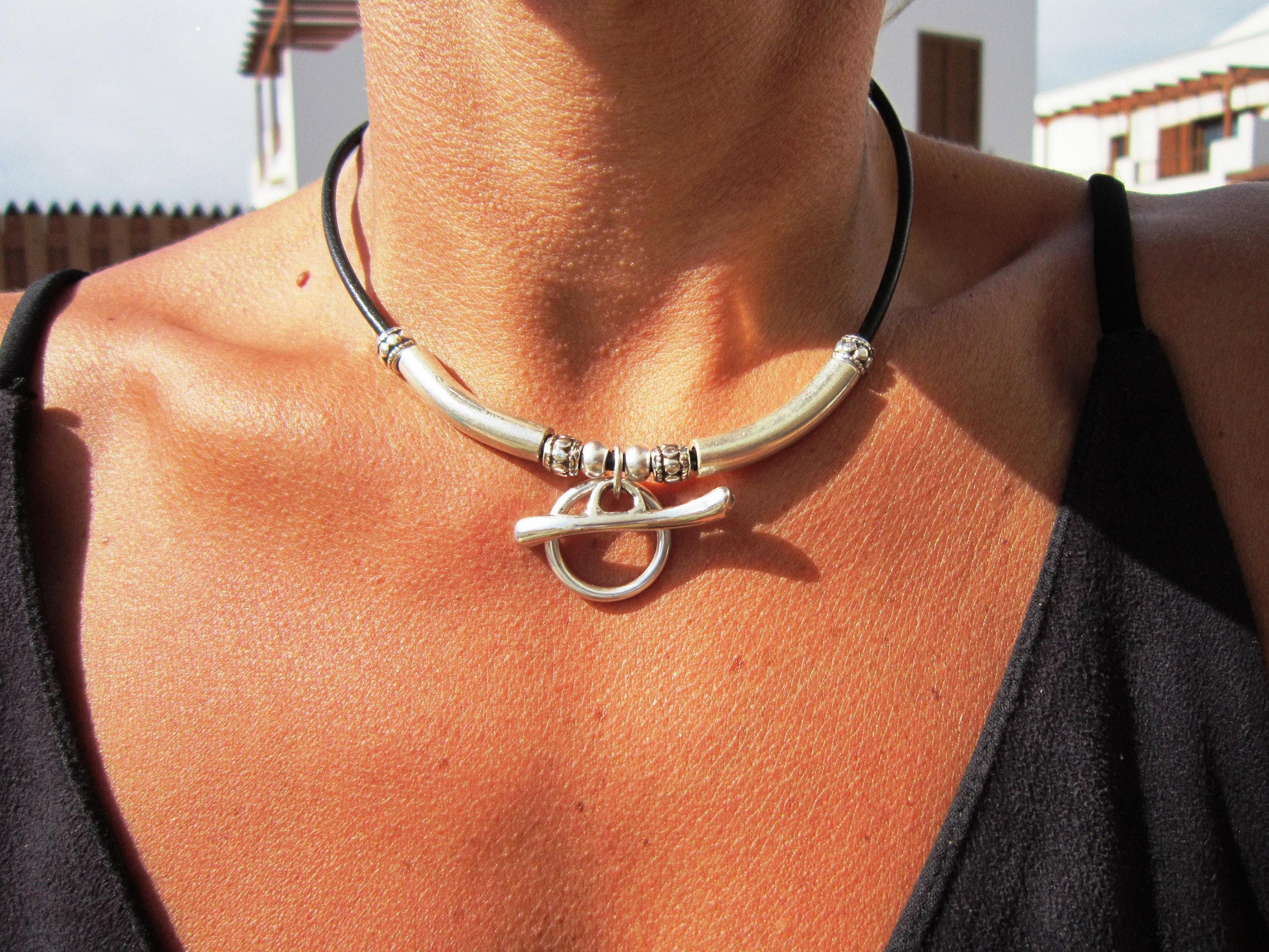 ♥ This Statement silver beaded leather ring choker necklace is part of our best selling items, featuring a dainty ring necklace in this design, a perfect blend of timeless style handmade jewelry. Silver necklaces for women made to size to match your style. Designed as a delicate charm necklace, a layered pendant necklace, or a bold statement necklace perfect as Couples Necklace it’s available in multiple lengths to match your style. at KEKUGI you can find pendant necklaces, beaded necklaces, charm necklaces, choker necklaces, multi-strand necklaces and lariat & Y necklaces, unique bohemian summer jewelry designs.