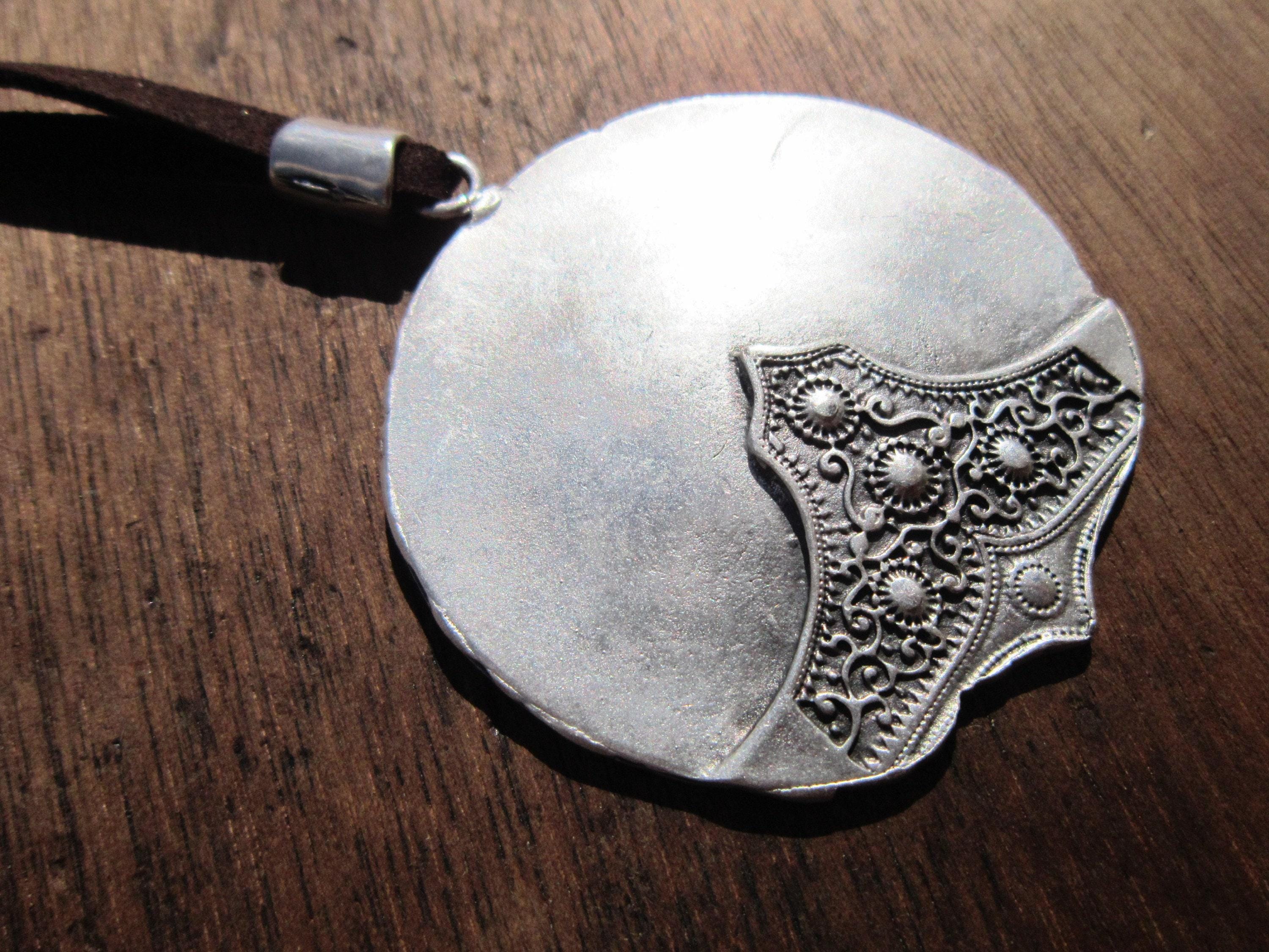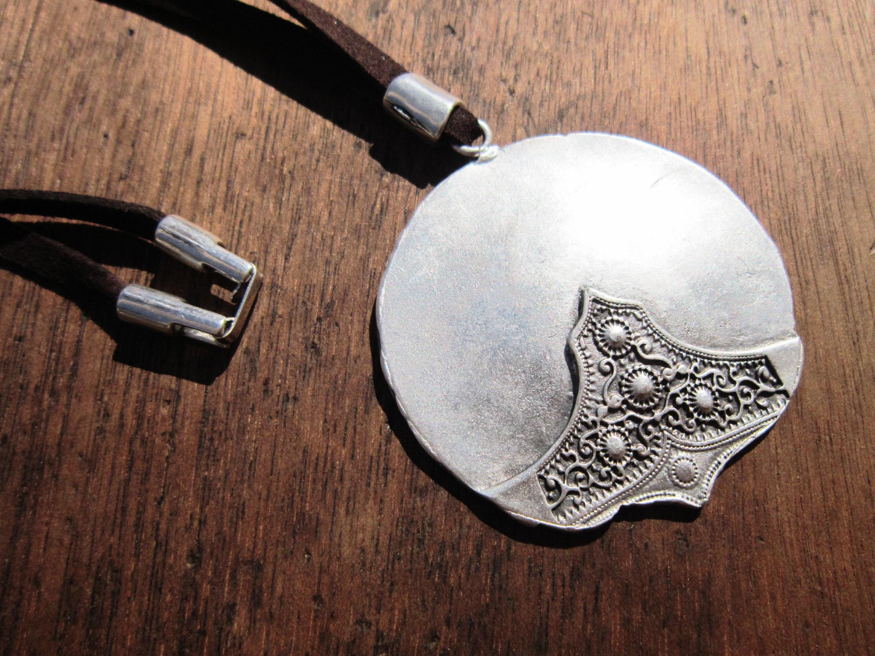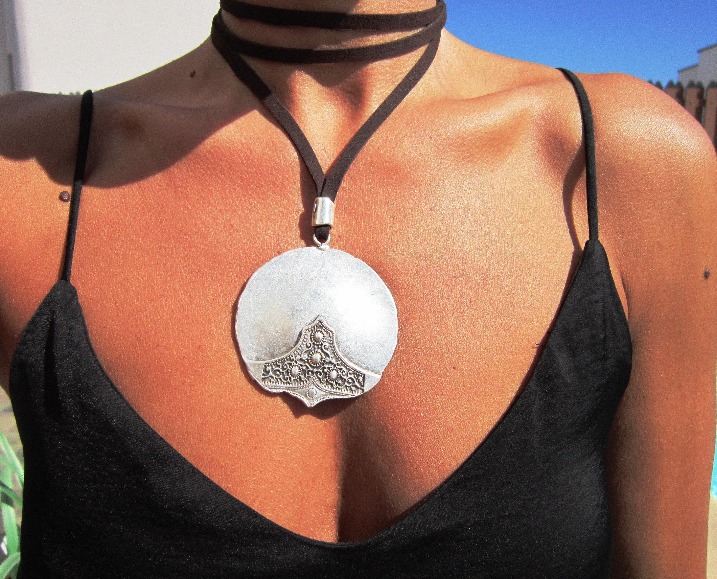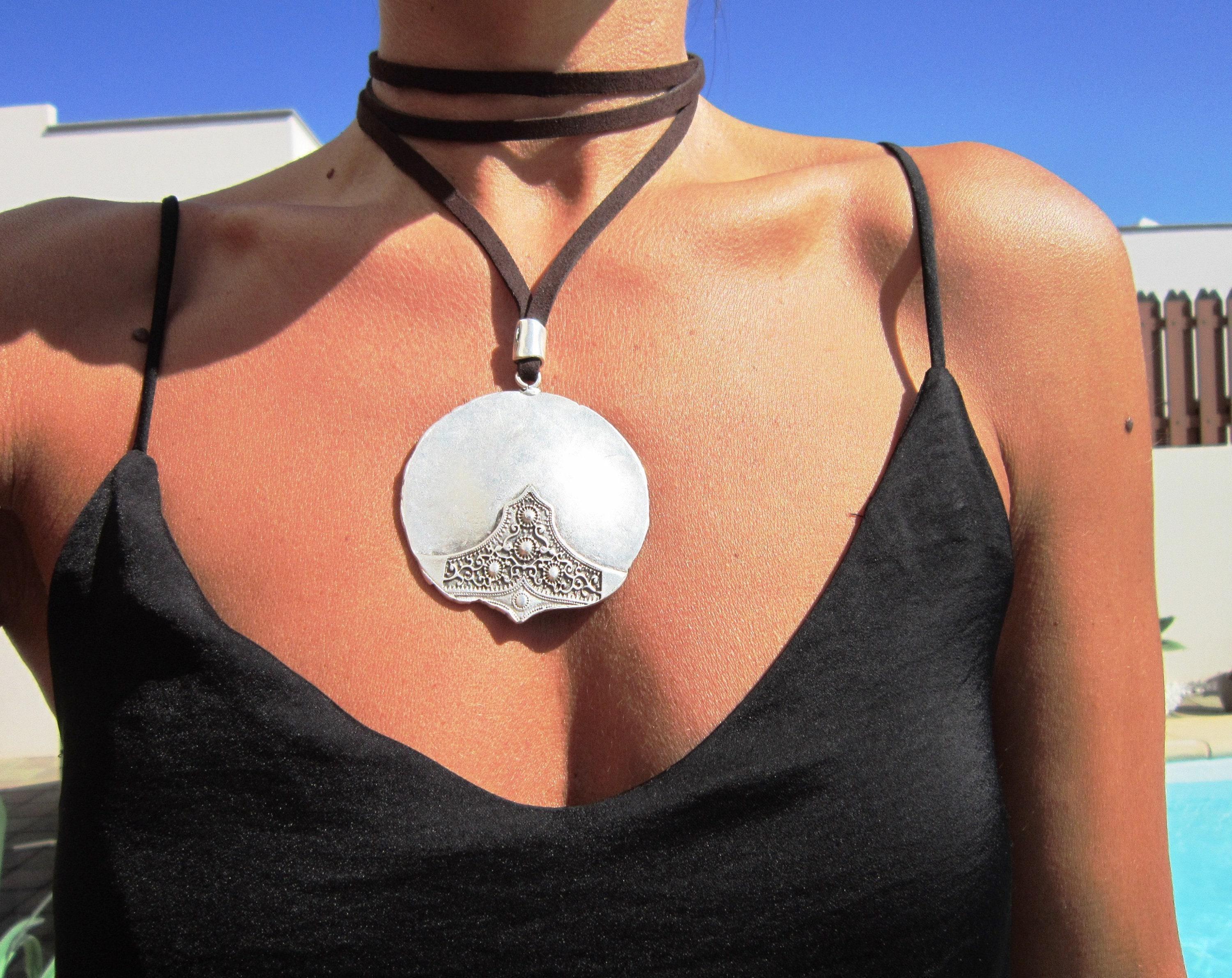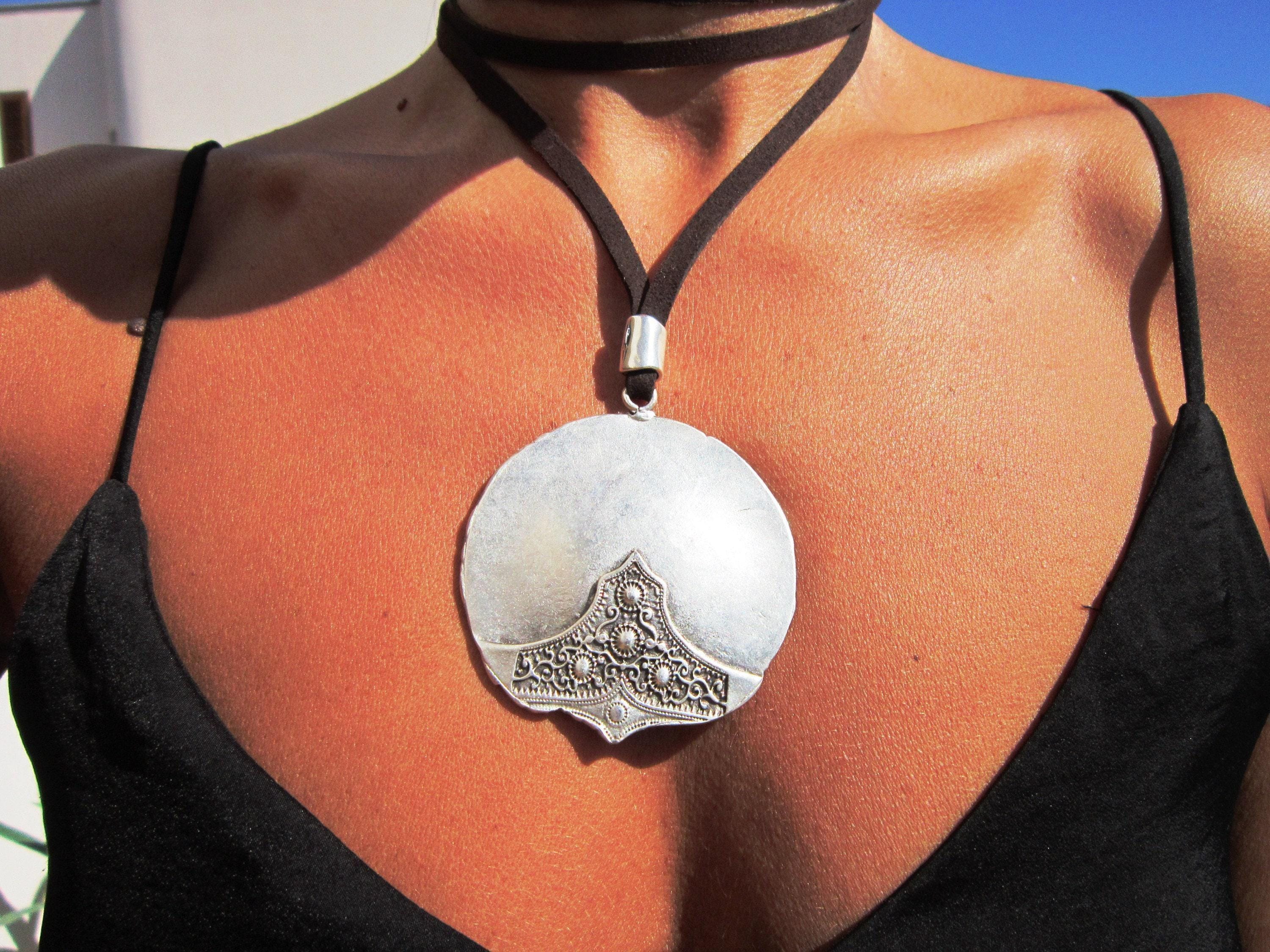Statement Silver Chunky Pendant leather Necklace • Bohemian Neotribal Jewelry • Custom necklace Best Selling Items • Host Gift for Her