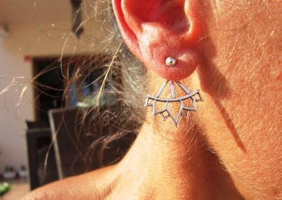 1 pair 2 pcs silver stars ear jacket, Gift for her hook sterling silver earrings dangle, drop earrings. cute boho unique earrings by kekugi