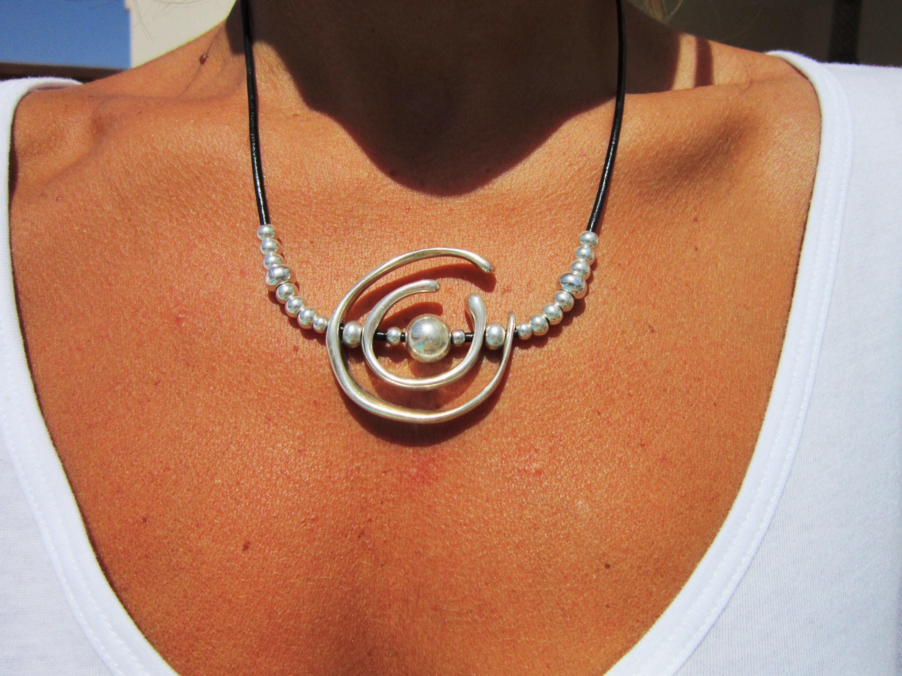 ♥ This Statement leather and silver beaded pendant necklace is part of our best selling items, a perfect blend of timeless style handmade jewelry. Silver necklaces for women made to size to match your style. Designed as a delicate charm necklace, a layered pendant necklace or a bold Couples necklace, it’s available in multiple lengths to match your style. at KEKUGI you can find pendant necklaces, beaded necklaces, charm necklaces, choker necklaces, multi-strand layered necklaces and lariat & Y necklaces, unique bohemian jewelry Best selling items designs.
